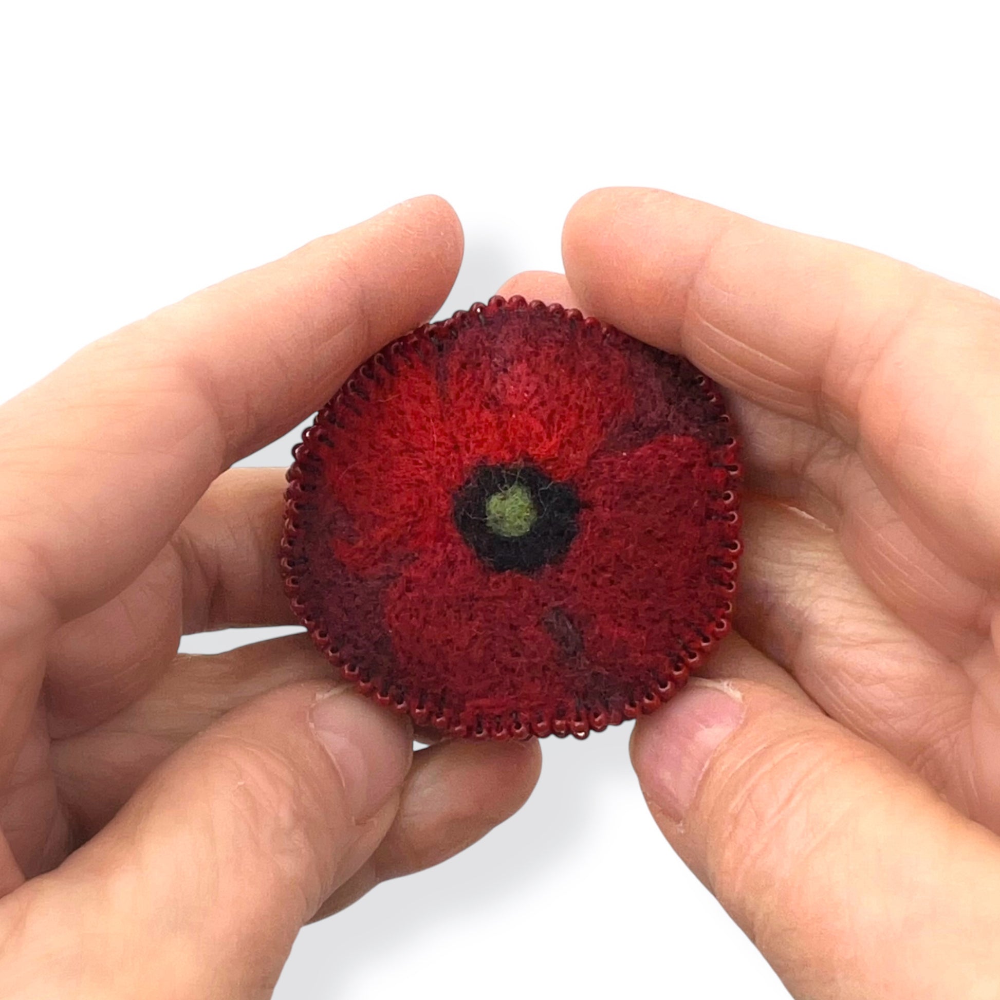 This red and black Poppy Flower Brooch was needle felted with an assortment of wool fleece colours.  A great pin for to wear during the Fall in remembrance of those that gave their lives during the last world wars.