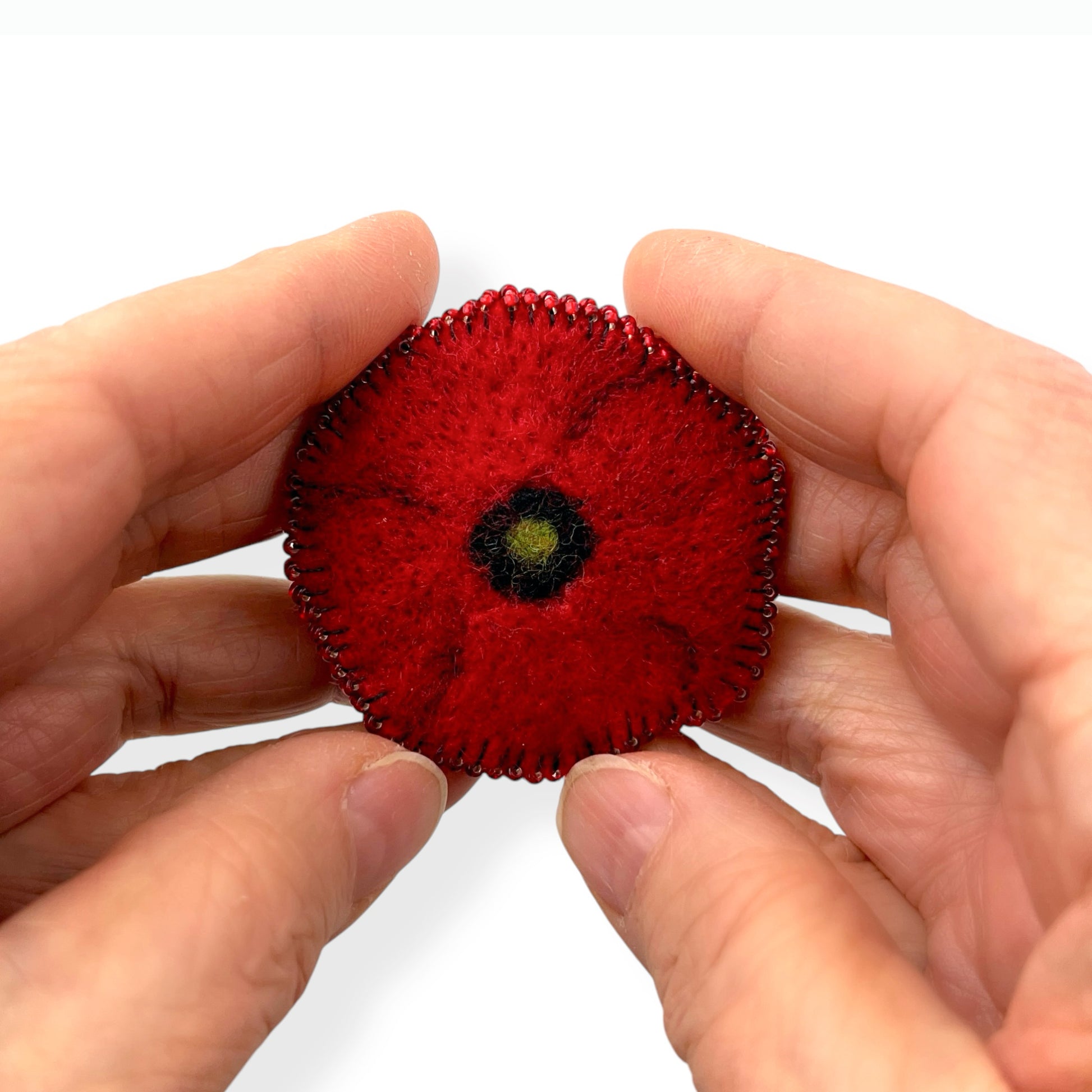 This red and black Poppy Flower Brooch was needle felted with an assortment of wool fleece colours.  A great pin for to wear during the Fall in remembrance of those that gave their lives during the last world wars.