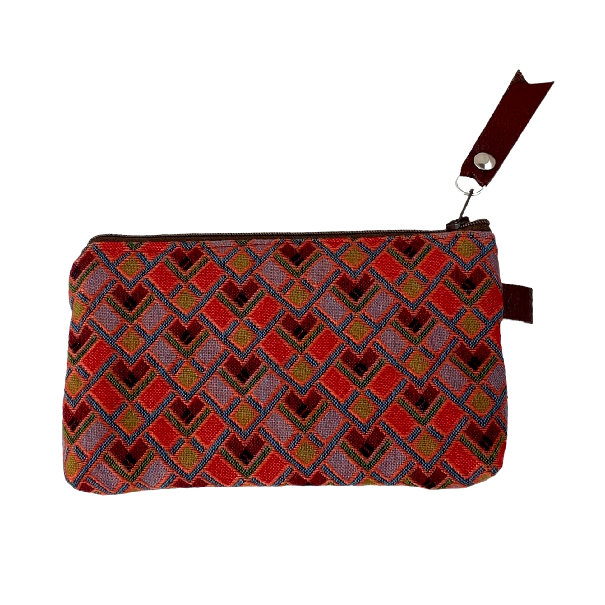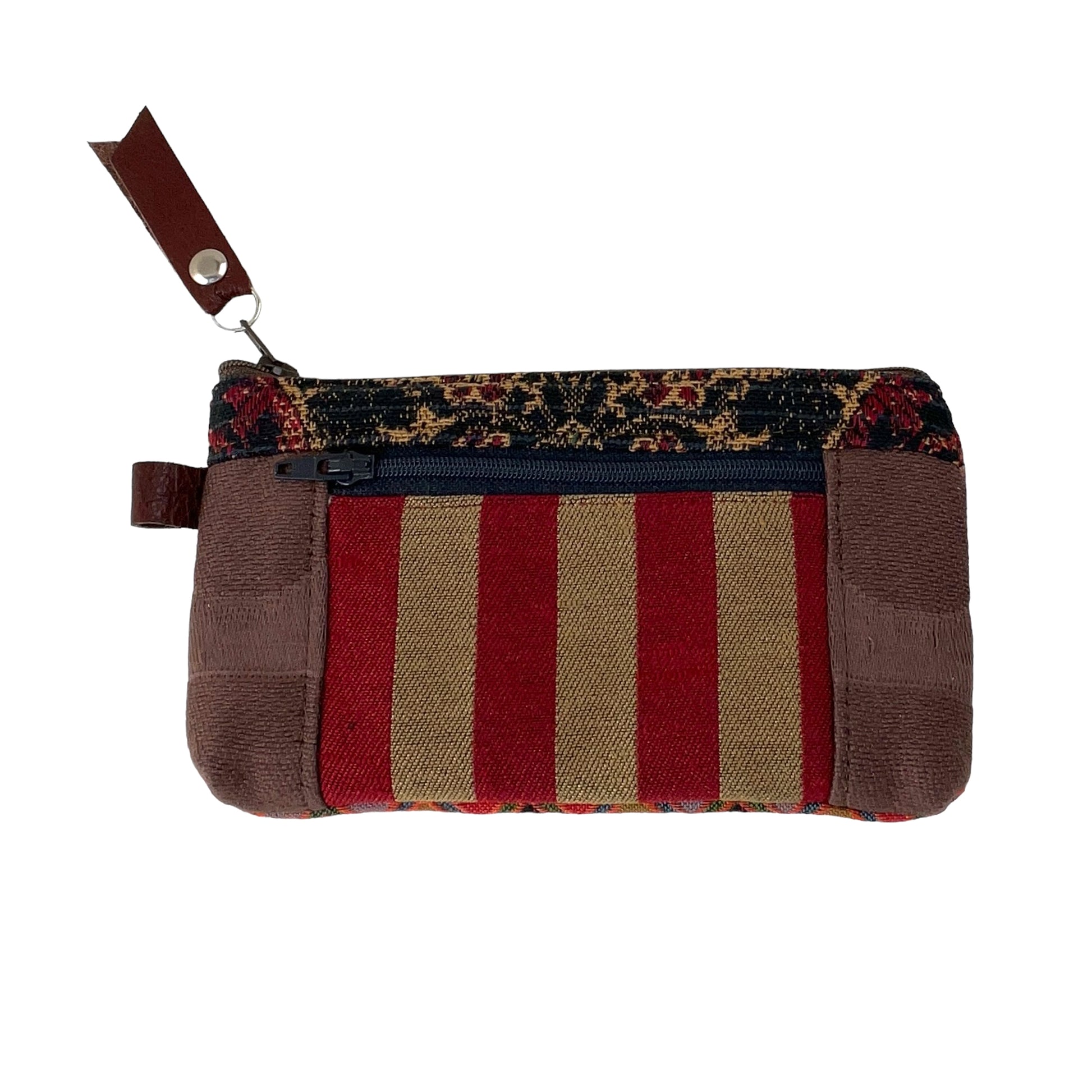 Red Black Gold Patchwork Tapestry Zipper Card Wallet