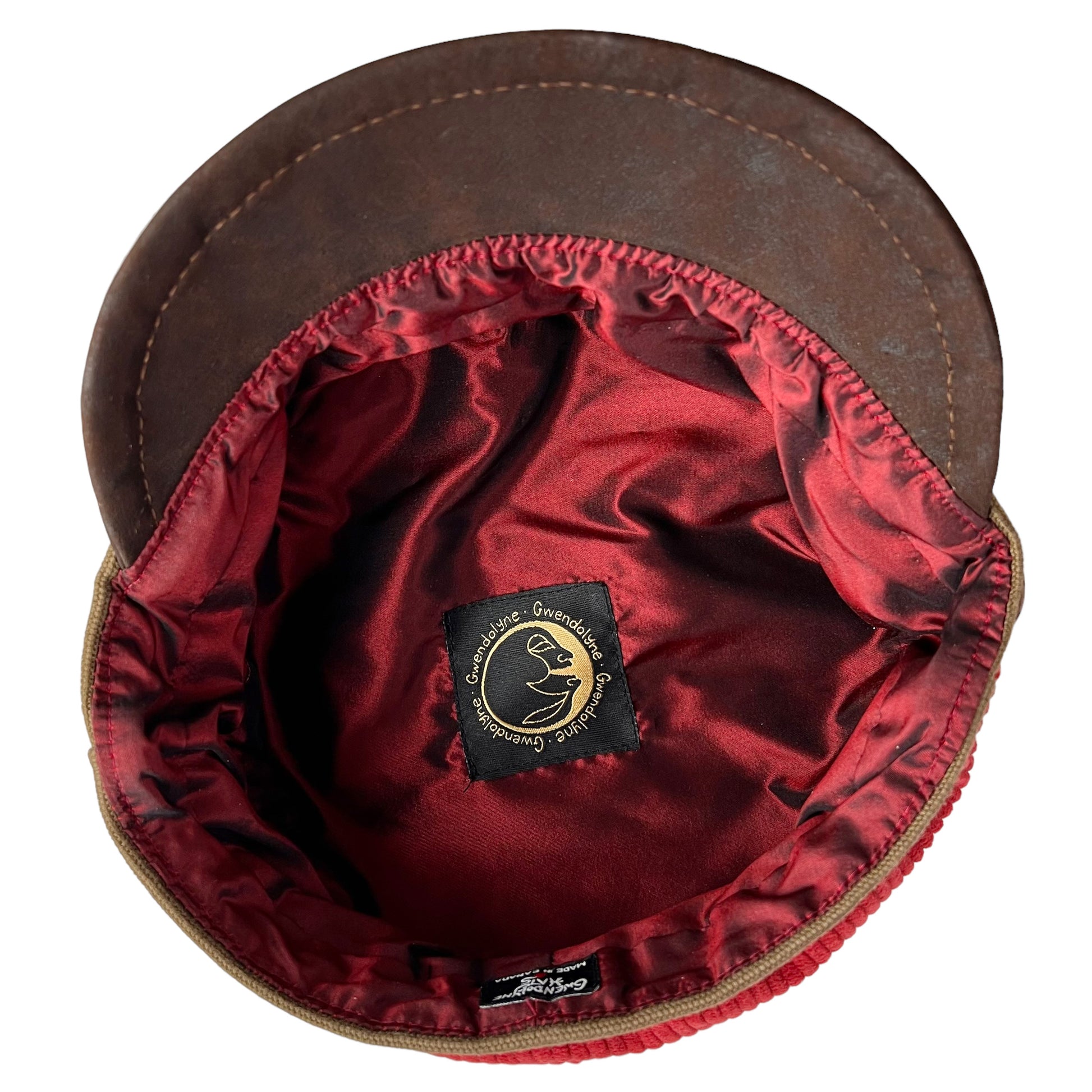Named "The Cordy" this unisex casual peak cap design has been hand cut from a red dutch cotton corduroy fabric. The band is made from a strong warm wheat color basket weave cotton. I hand cut my lamb leather peak and reinforce it with a leather board inside, then finish it off by top stitching on my leather machine. The 3 antique buttons chosen for this cap are are hand sewn onto the band.