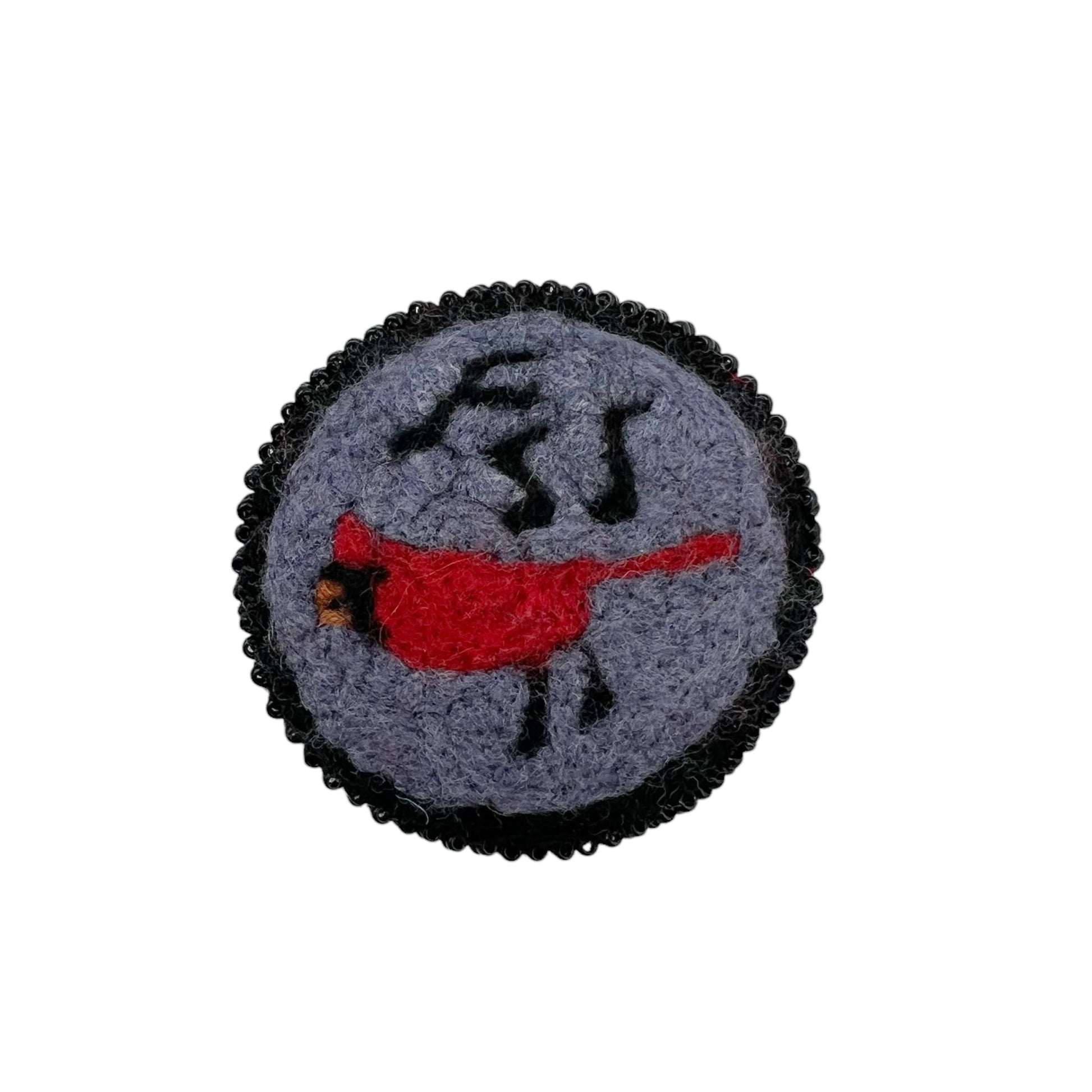 This red Cardinal bird Brooch was needle felted with an assortment of wool fleece colours.