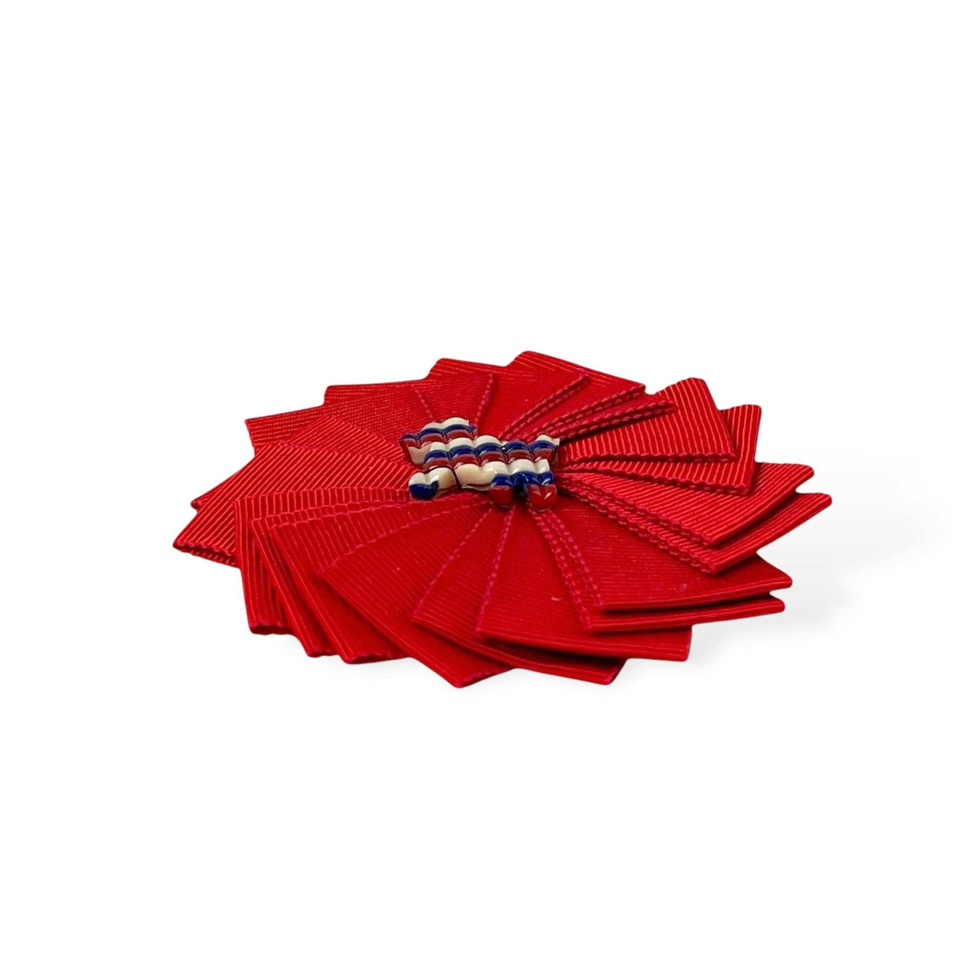 Red Vintage Doggie Button Cockade Ribbon Button Brooch edition #6