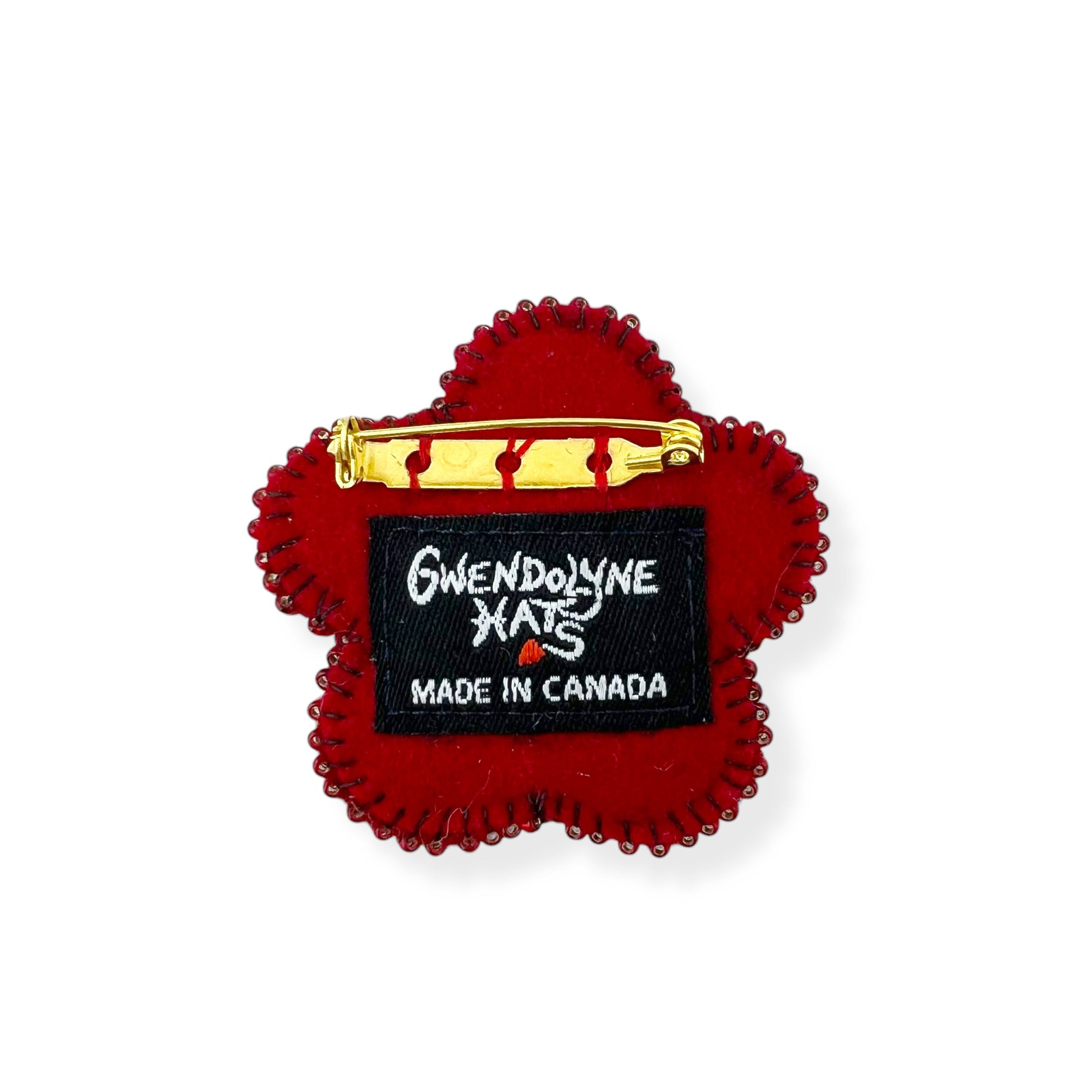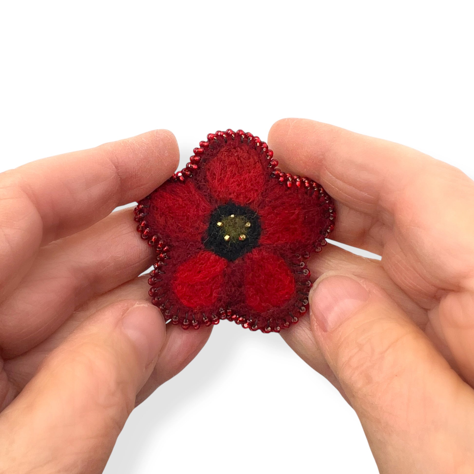 This red and black Fairy Flower Brooch was needle felted with an assortment of wool fleece colours. Embellished with 5 brass beads  in the centre.