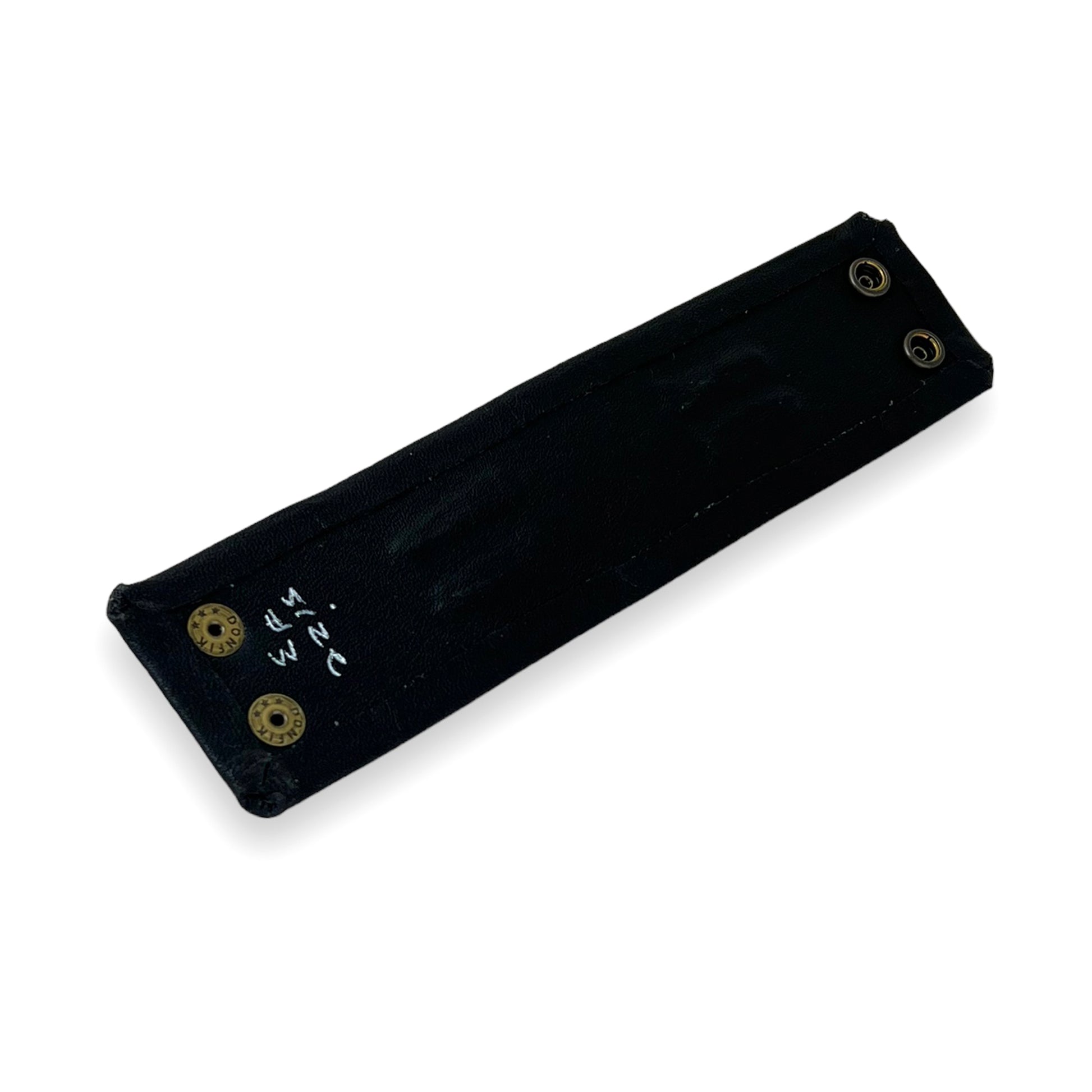 My process begins with creating a unique hand macrame work from waxed linen. Once completed I mount this work on a durable infrastructure that is covered on the top and bottom with cowhide leather. The cuff is 2 inches wide.