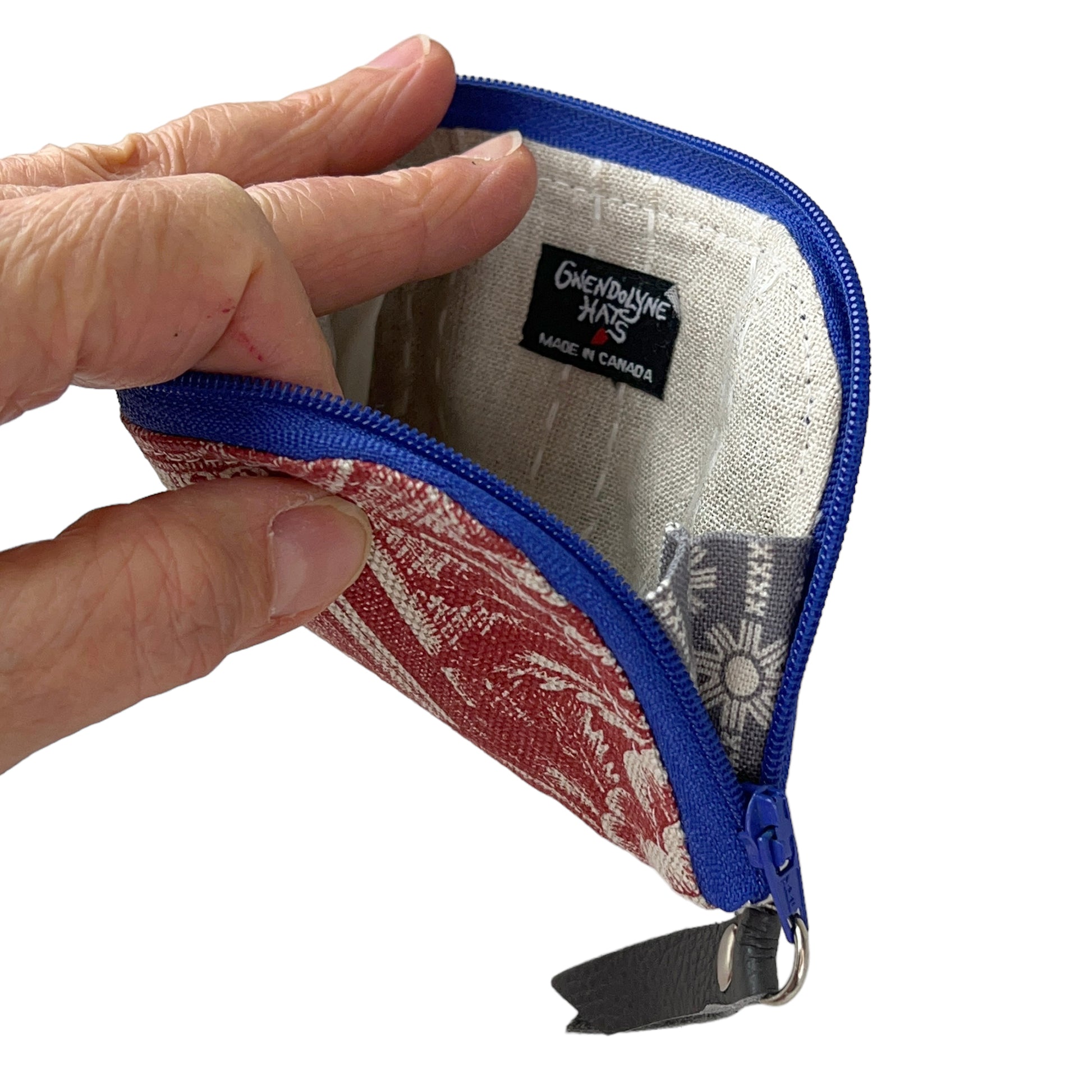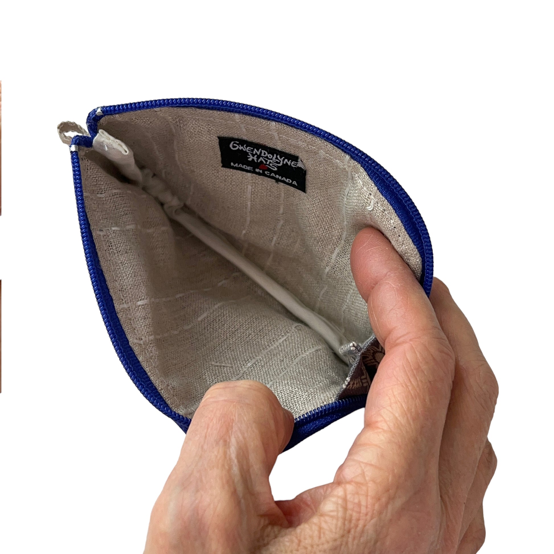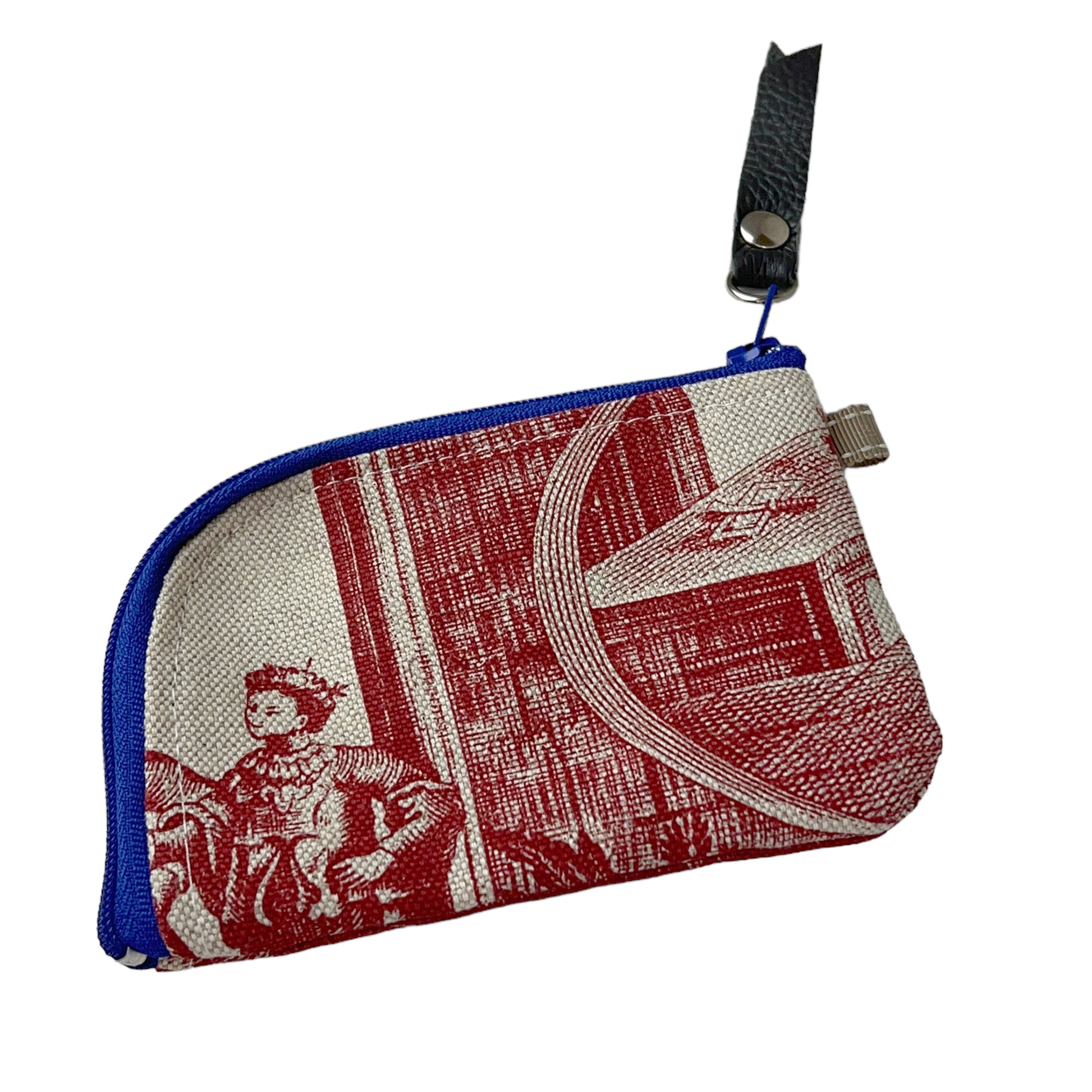 This hand cut and sewn printed linen Toile ladies card wallet holder is a one of a kind. For those who like to carry a small card wallet this one is perfect. It measures 4 1/2" wide and 3" height to hold as many as 14 of your everyday cards.