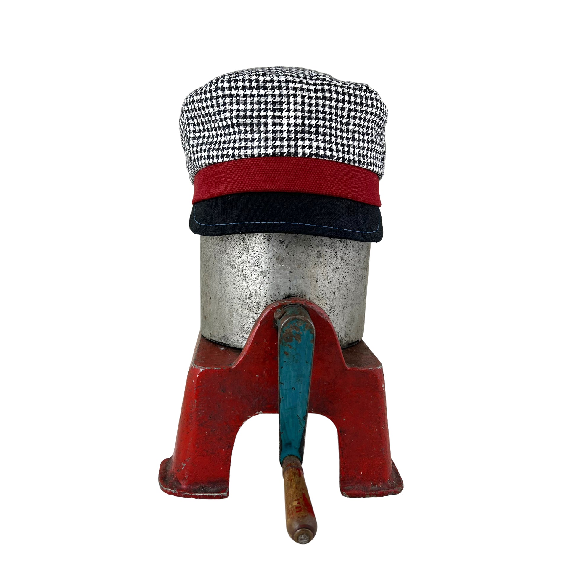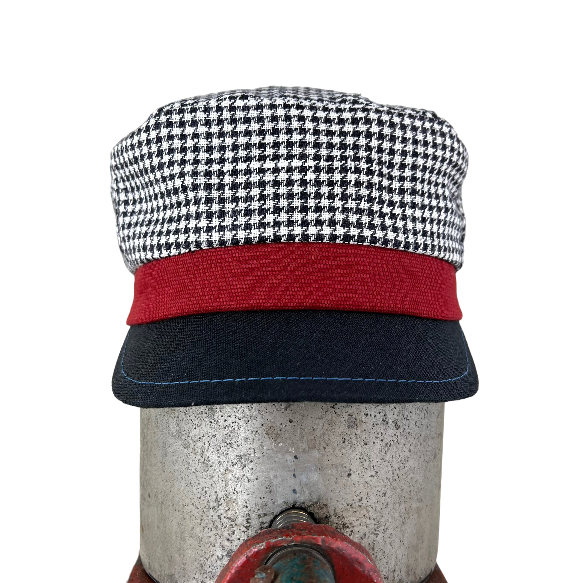 Black White Houndstooth Black Peak Robin Linen Cap Size Medium Large