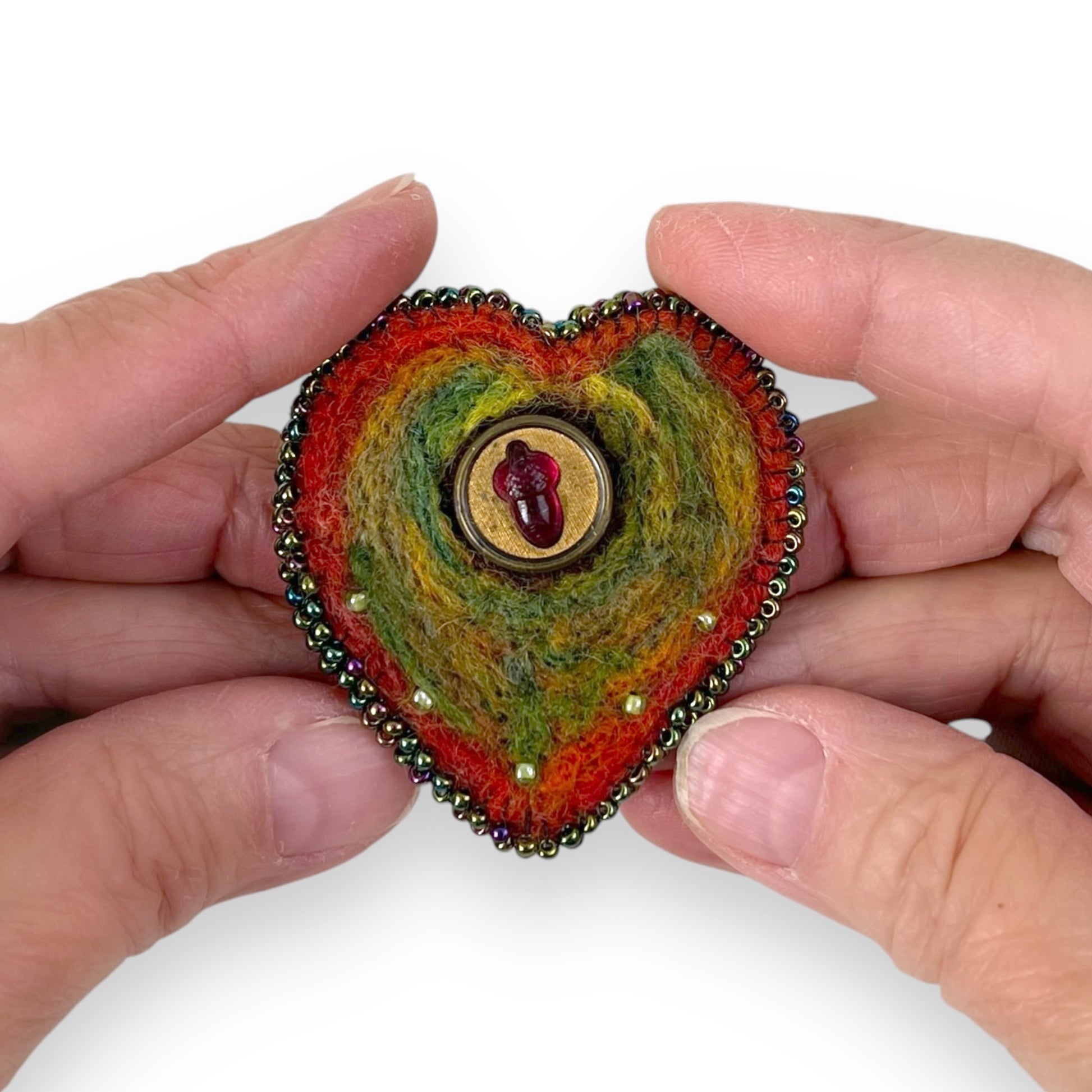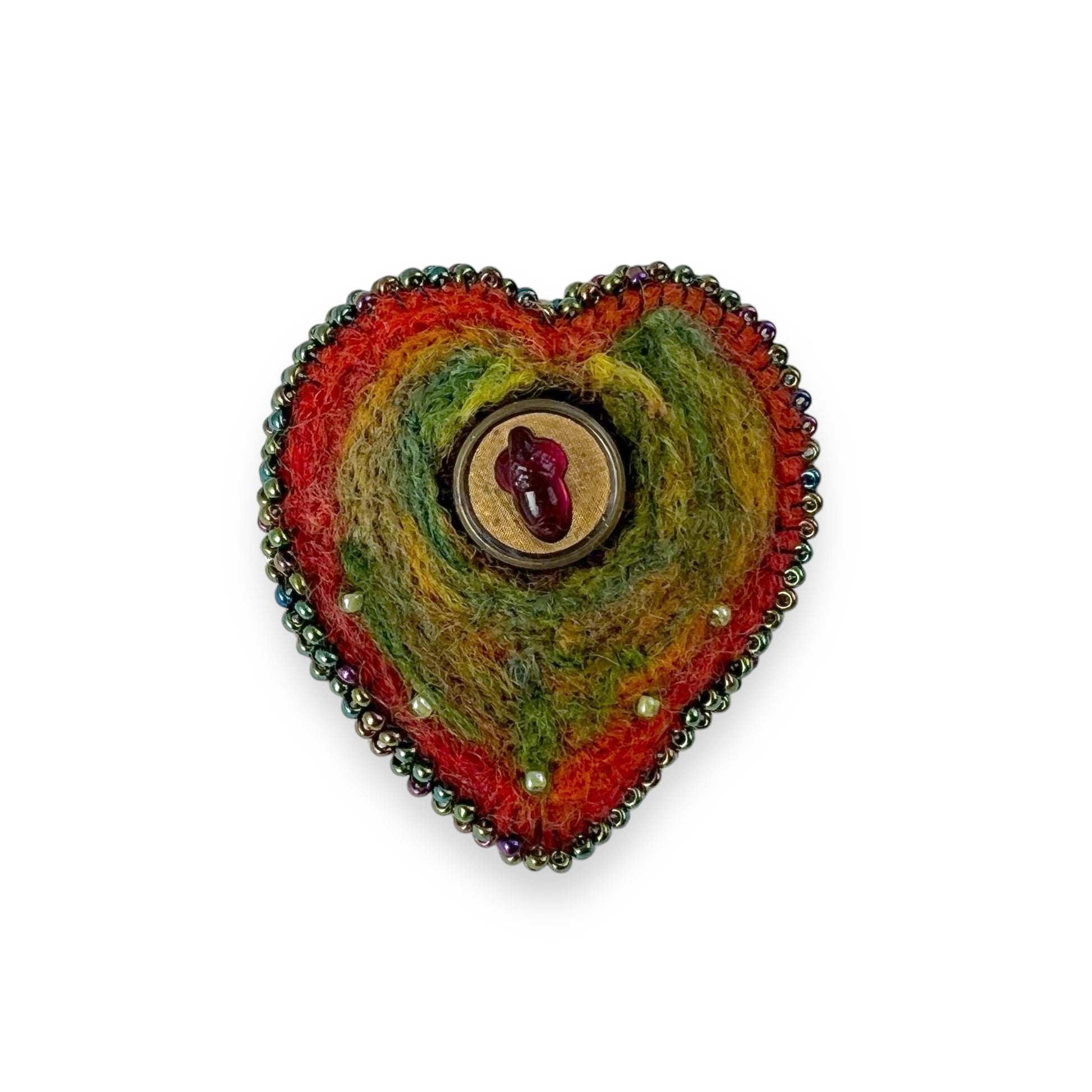 This rust and green heart felted pin is the fourteenth brooch I created, edition #14.