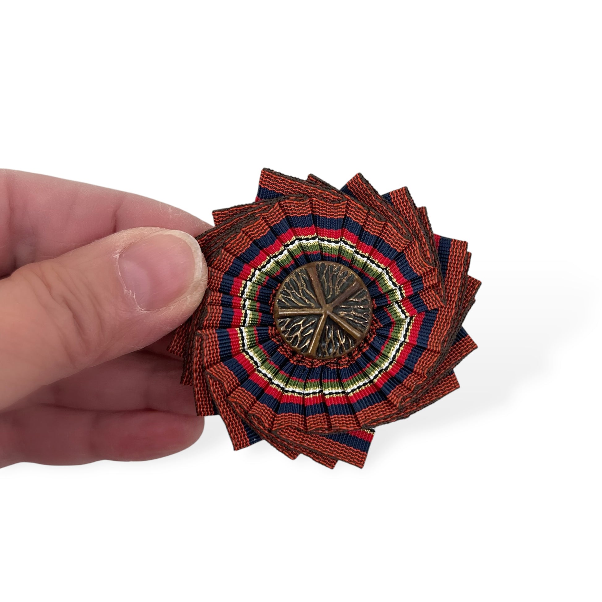 Rust Navy Red Antique metal Button Cockade Ribbon Brooch edition #4