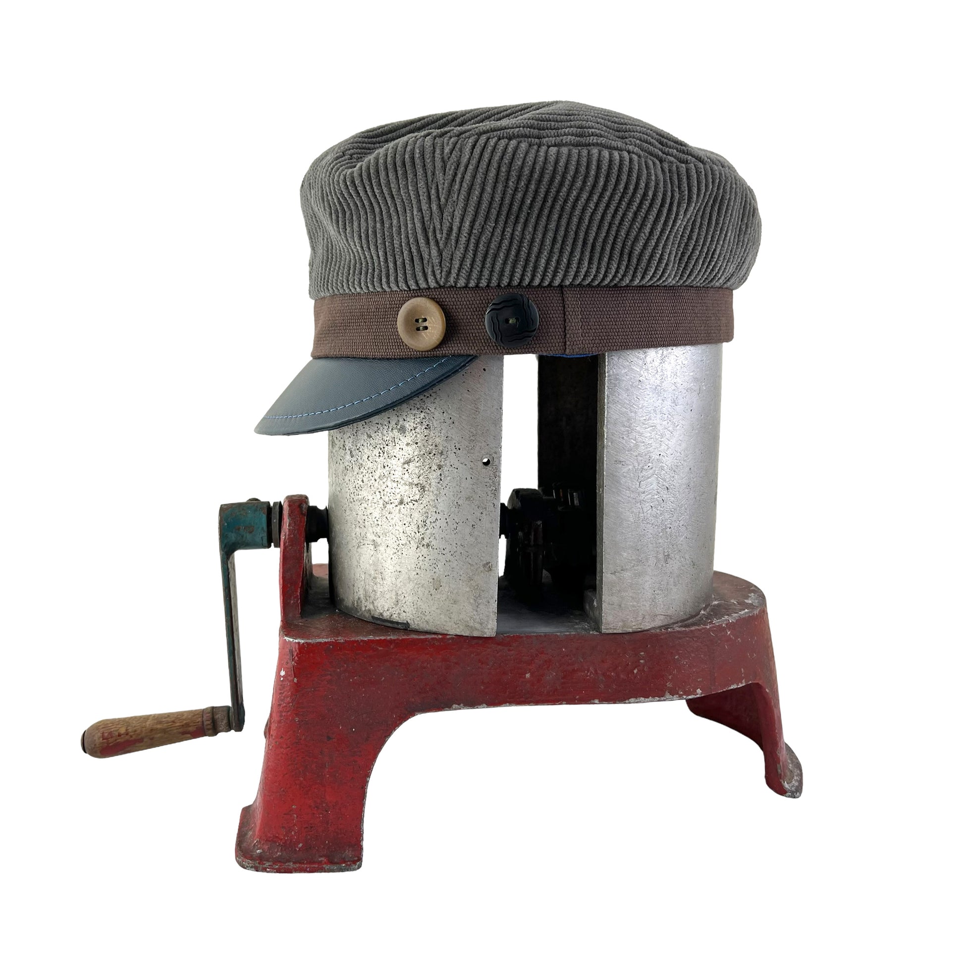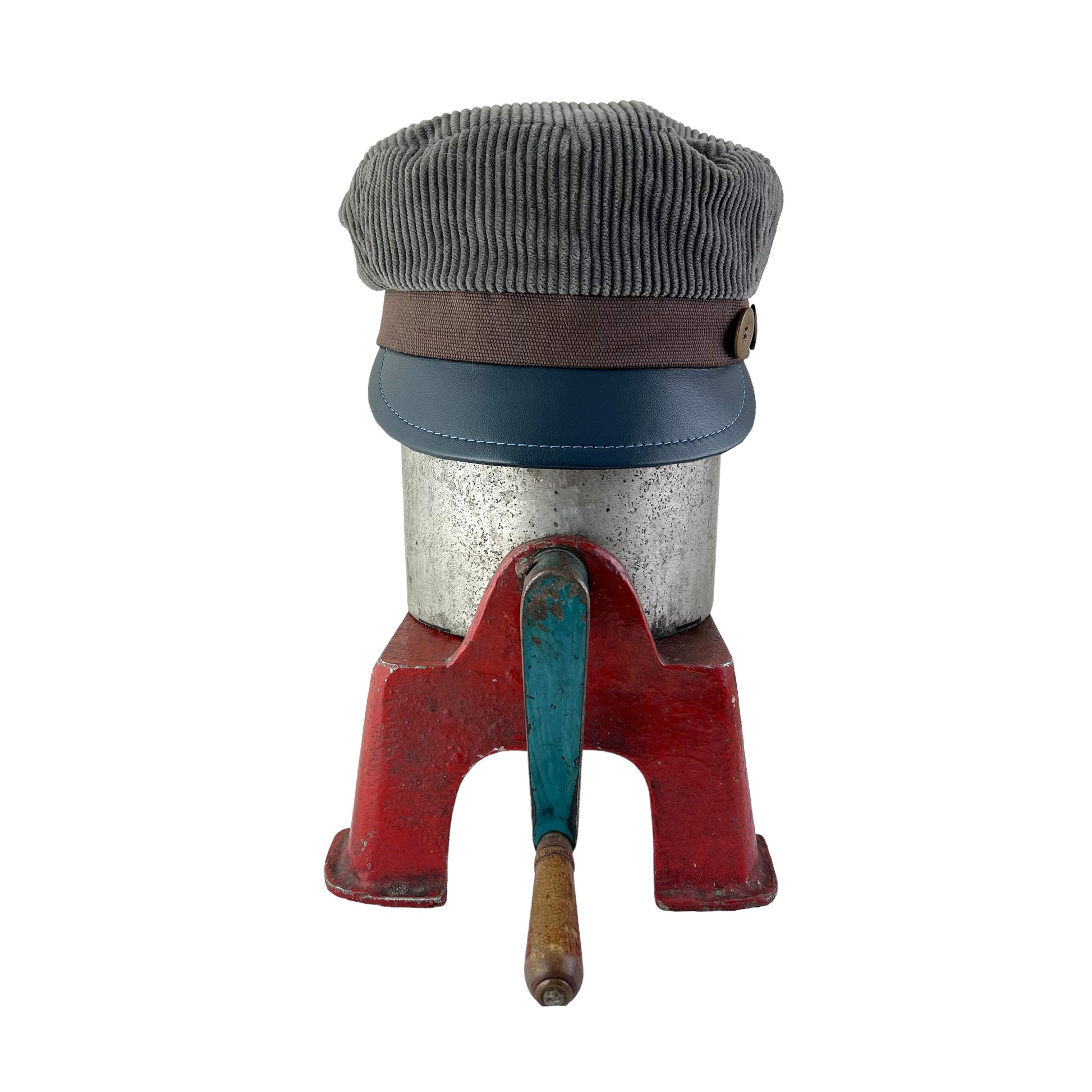Named "The Cordy" this casual unisex Breton styling cap design has been hand cut from a sage green cotton corduroy fabric. The warm brown colour band is made from a strong basket weave cotton. I hand cut my forest green lamb leather peak and reinforce it with a leather board inside, then finish it off by top stitching on my leather machine.