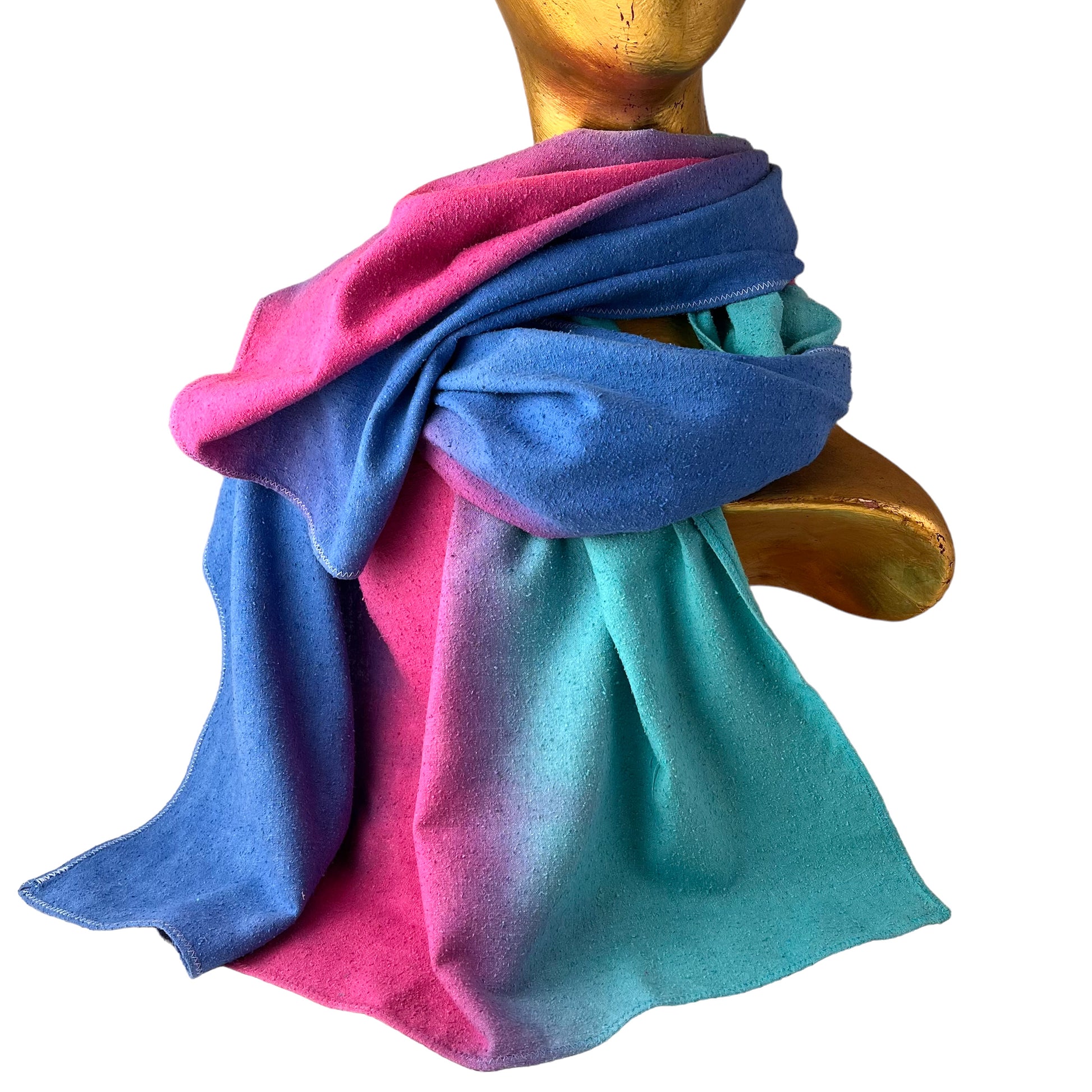 Silk Shawl Wrap Scarf Hand Dyed Pink Blue Turquoise