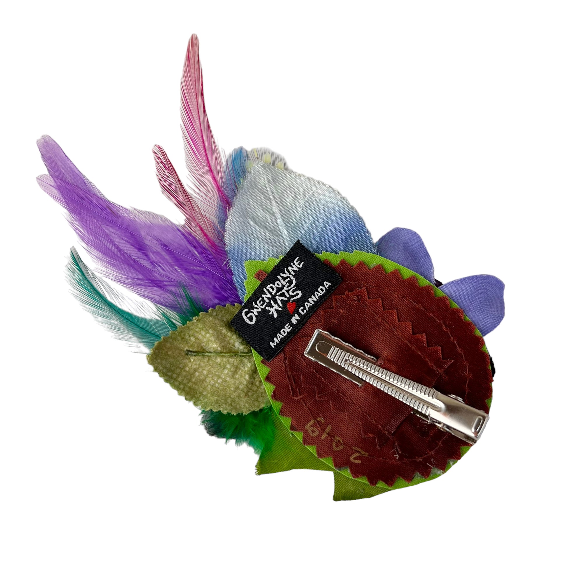 Small Flower Feather Button Hair Clip Mauve Purple Blue
