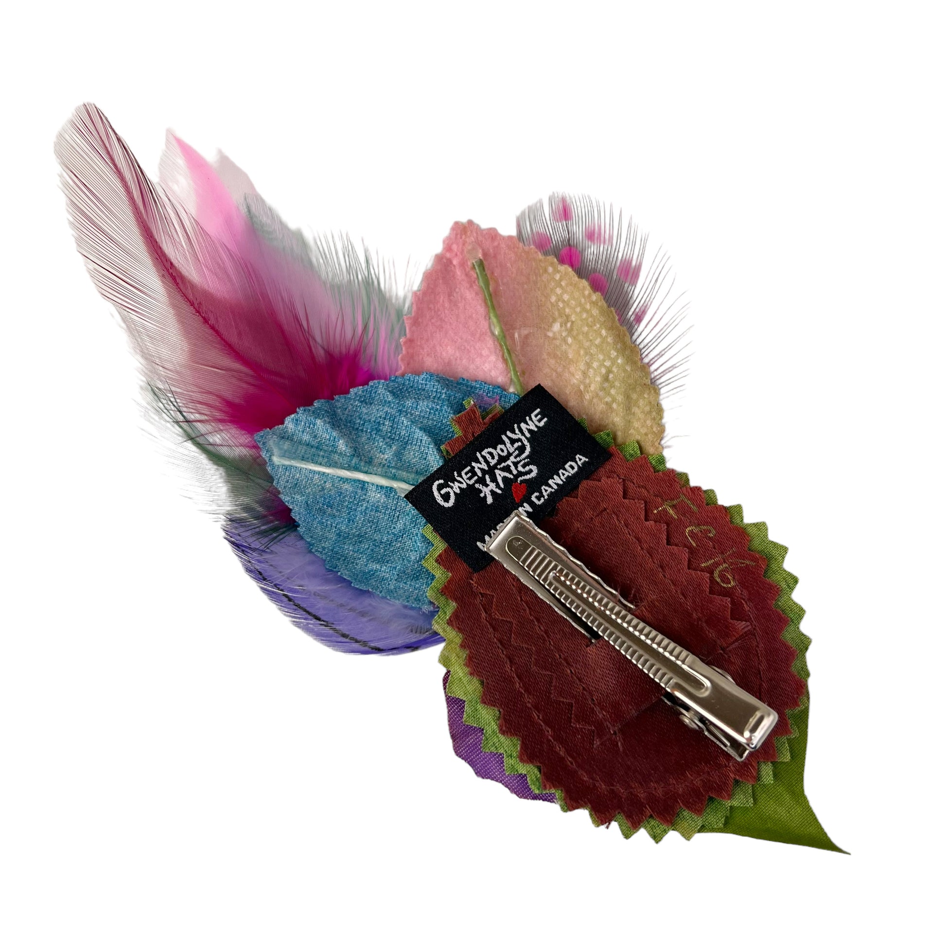 Small Flower Feather Button Hair Clip Purple Pink Light Blue