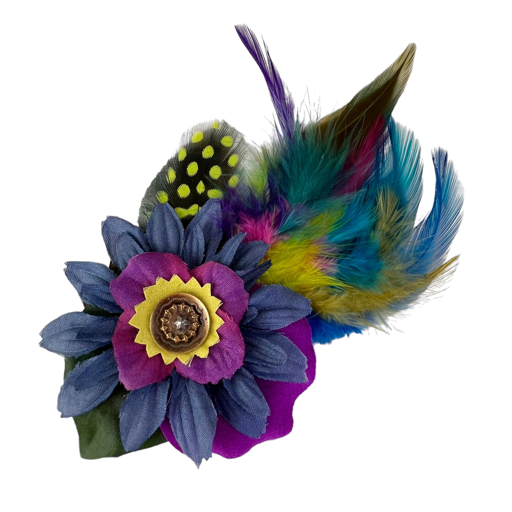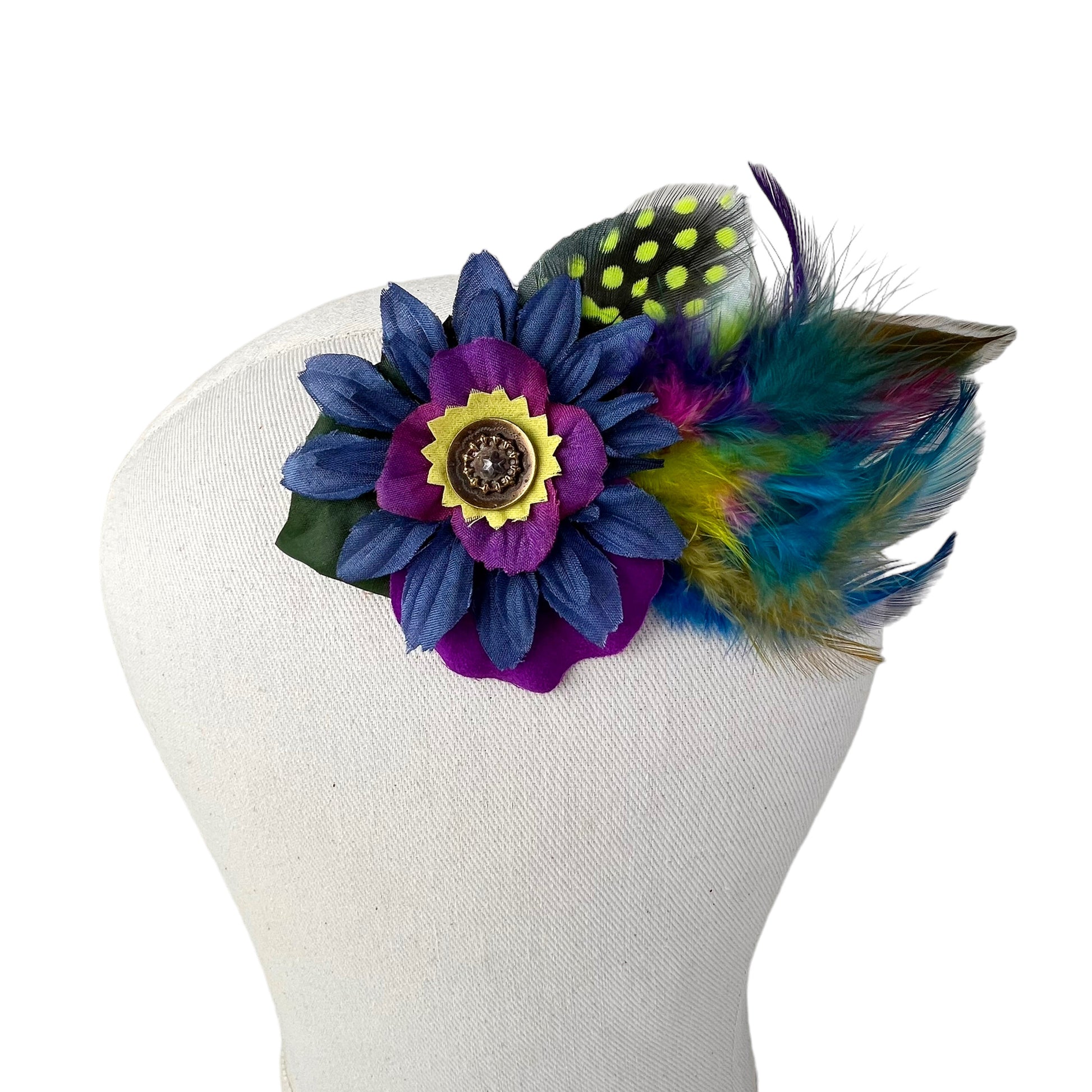 Small Flower Feather Hair Clip Navy Blue Purple Lime