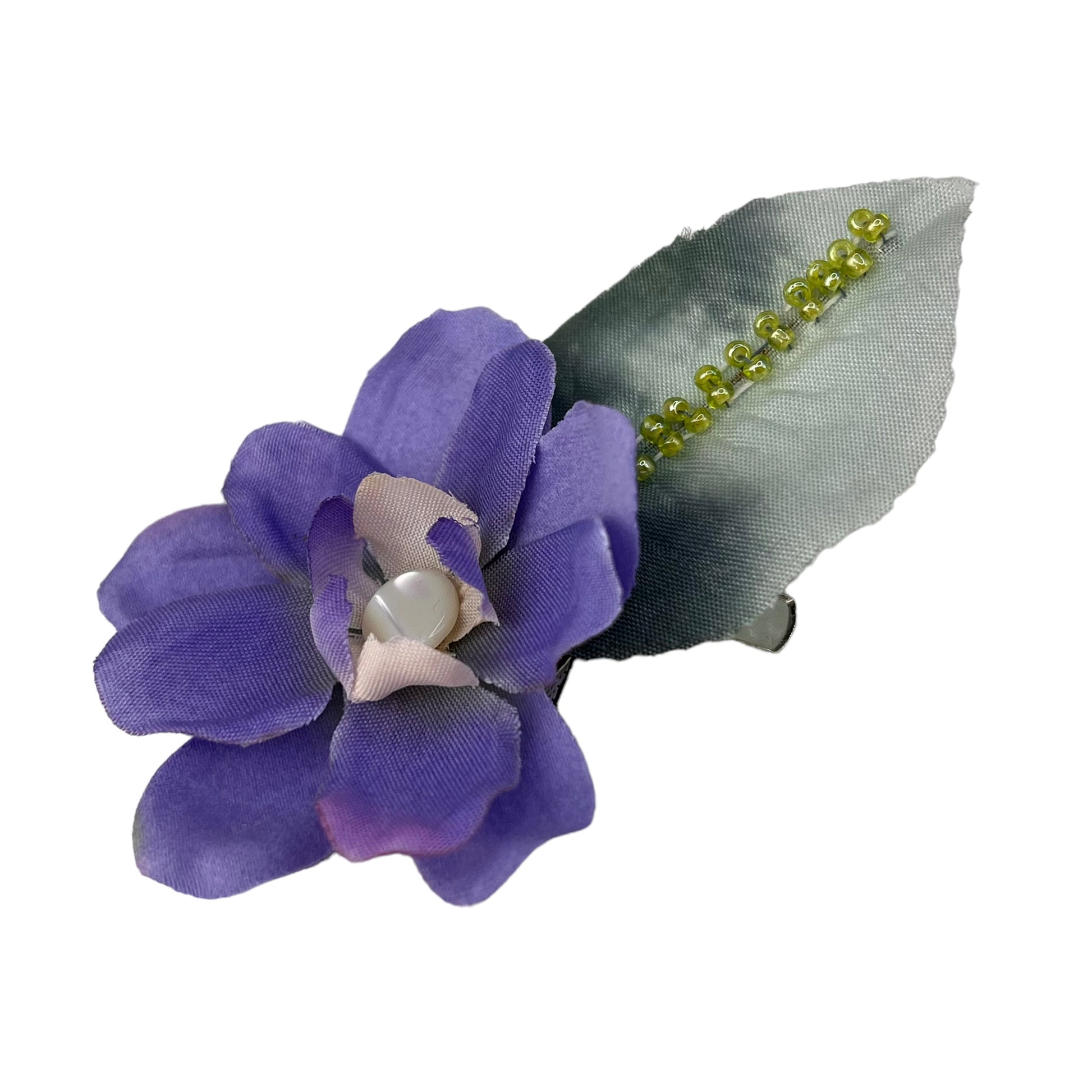 Small Flower Hat Clip Mauve green beads back