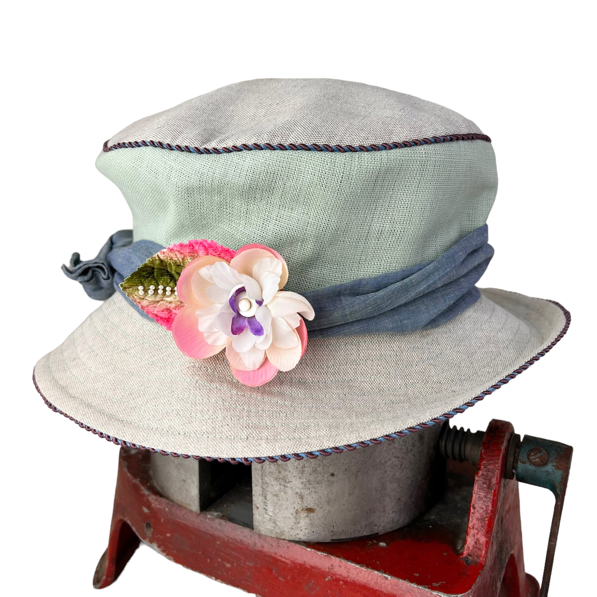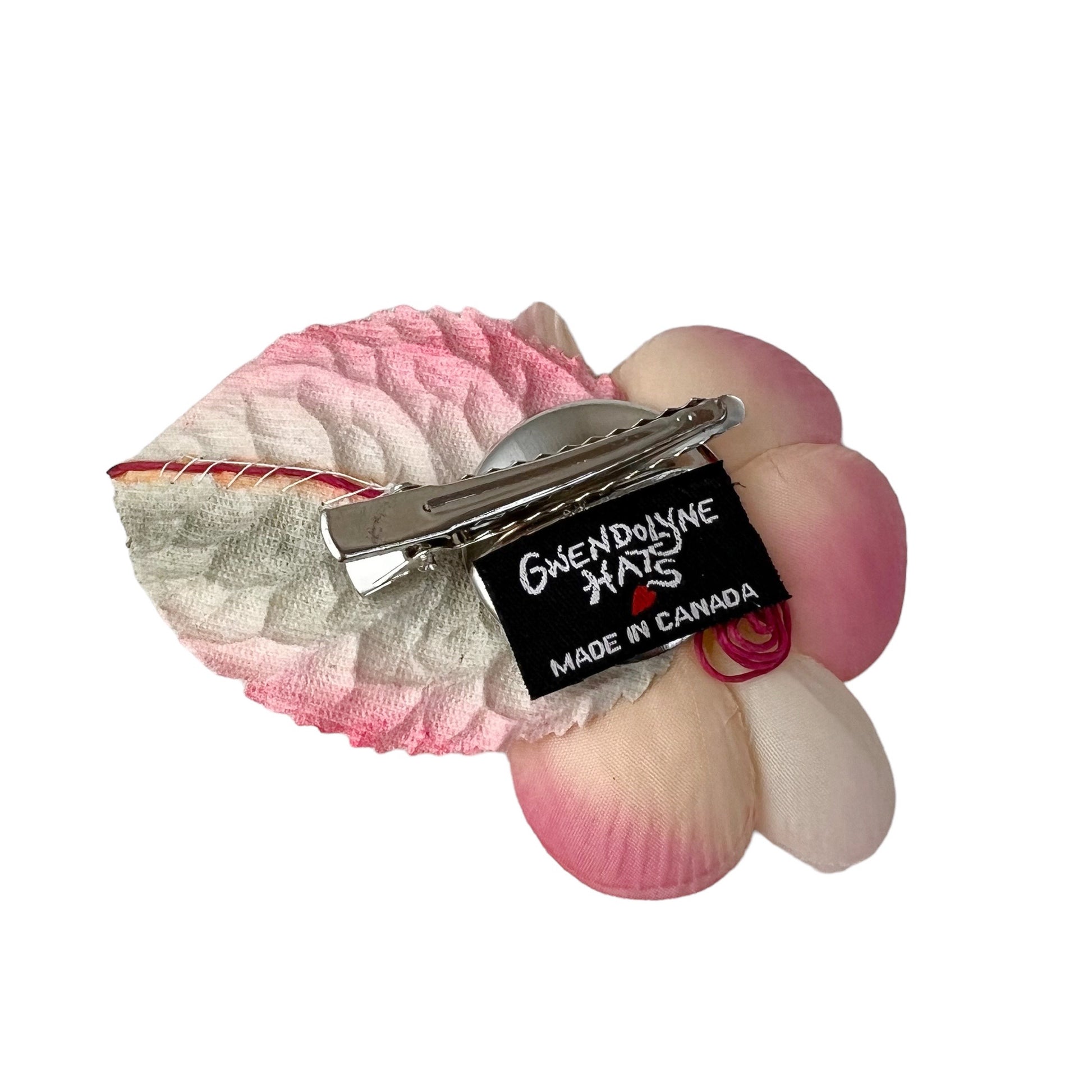 This small hand made, one of a kind, pink green hat clip is one of a kind. Worn on a hat band, a jacket lapel or shirt collar, it can bring some romantic feminine energy to ones life.