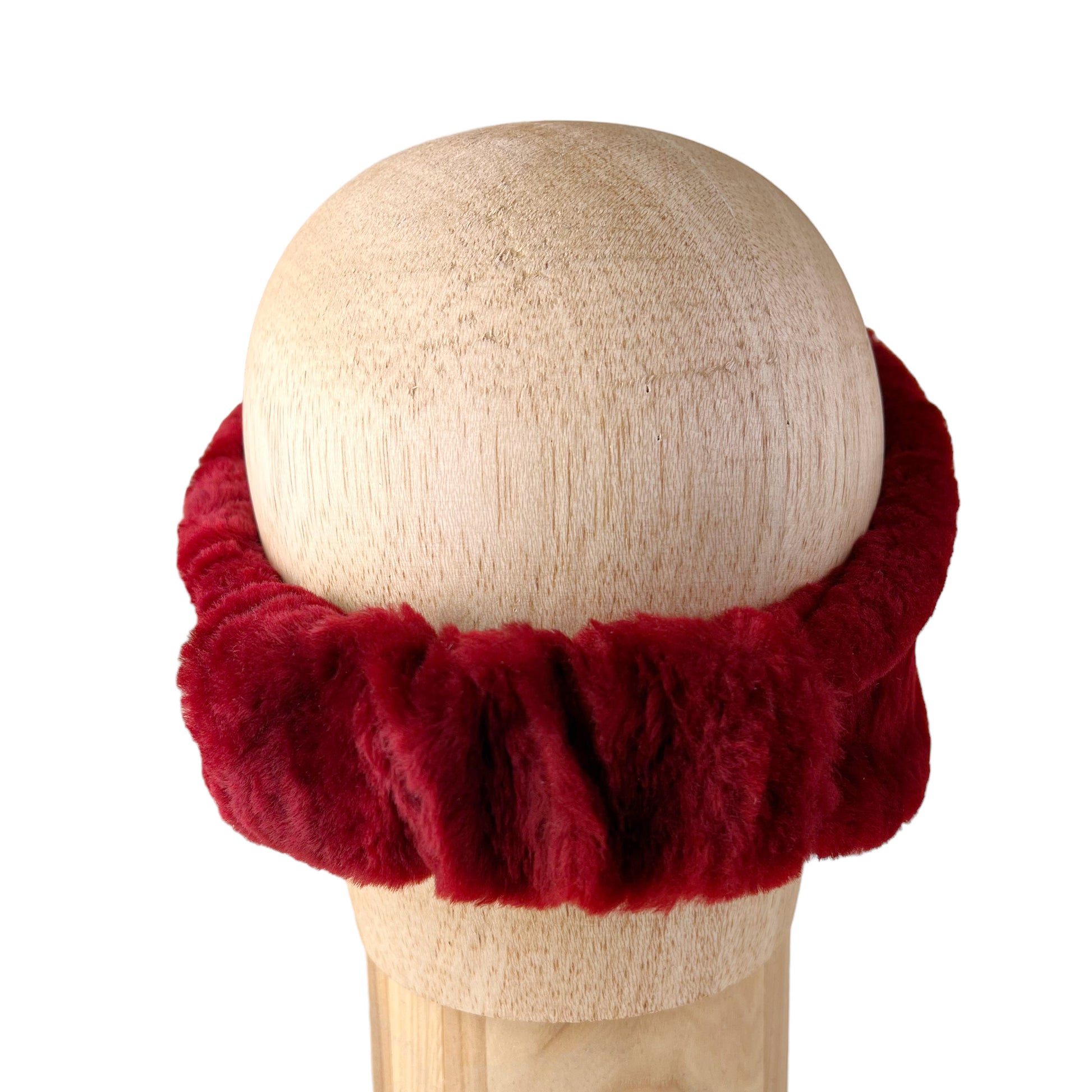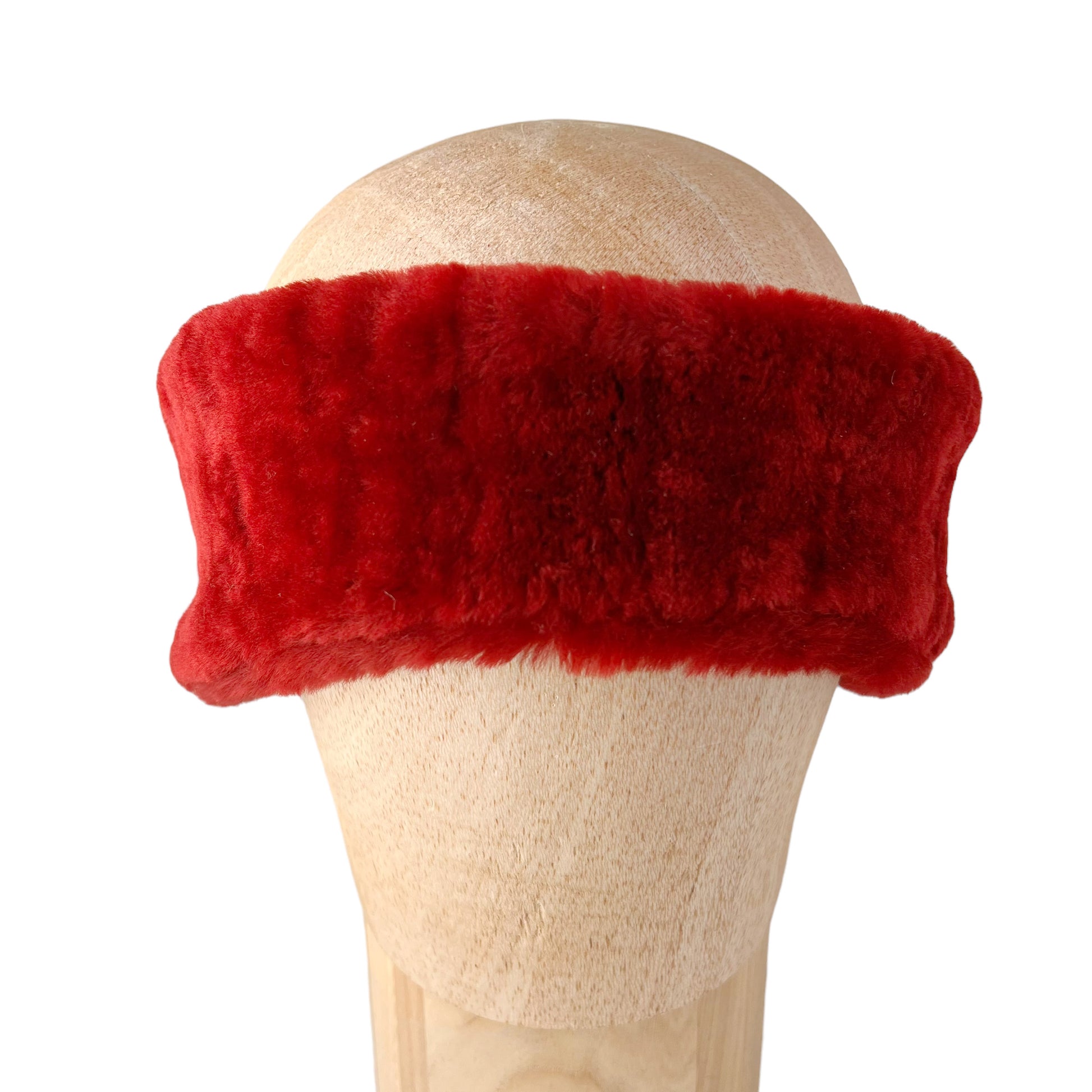 Soft Ruby Red Alpine Ear and Head Sheep Shearling Fur Band