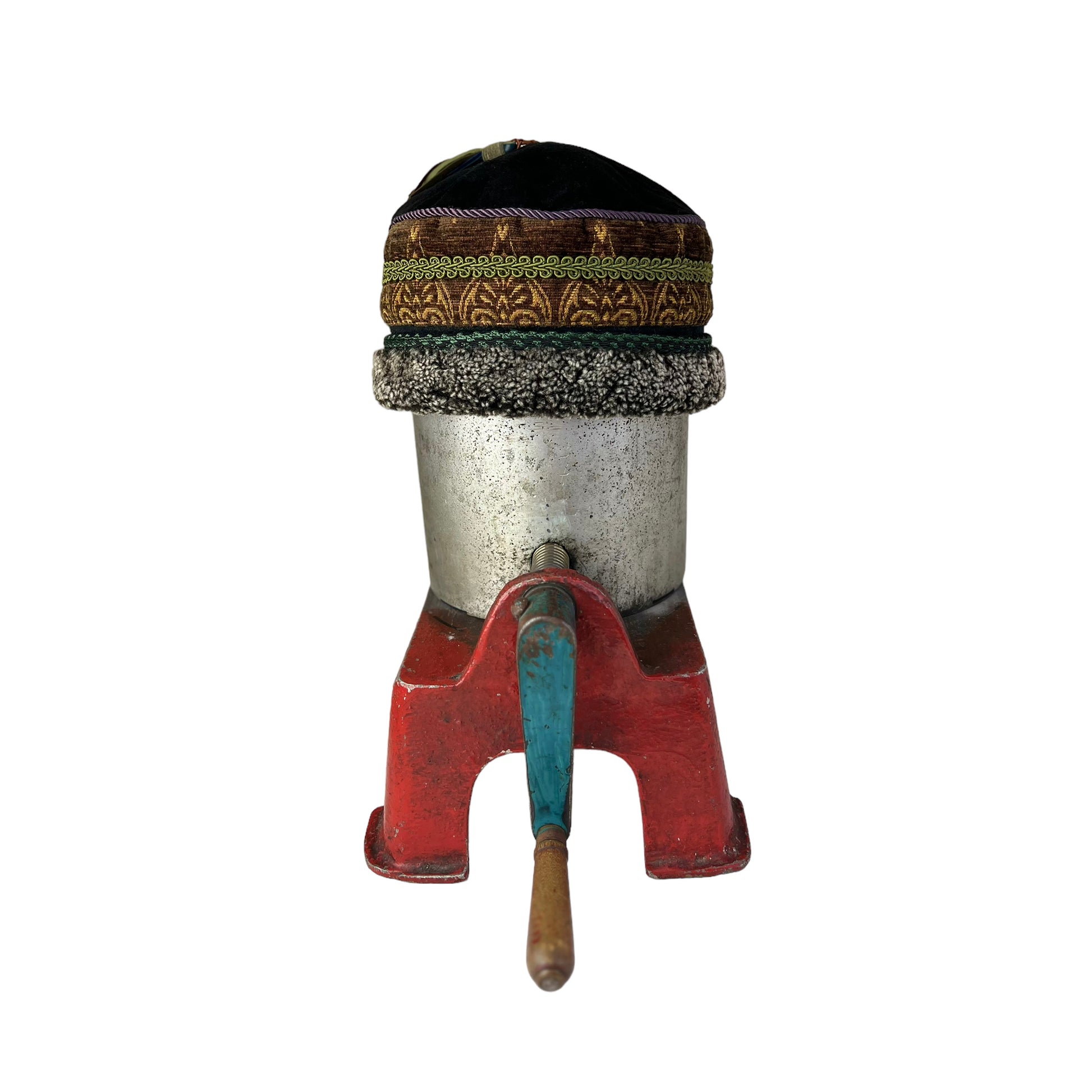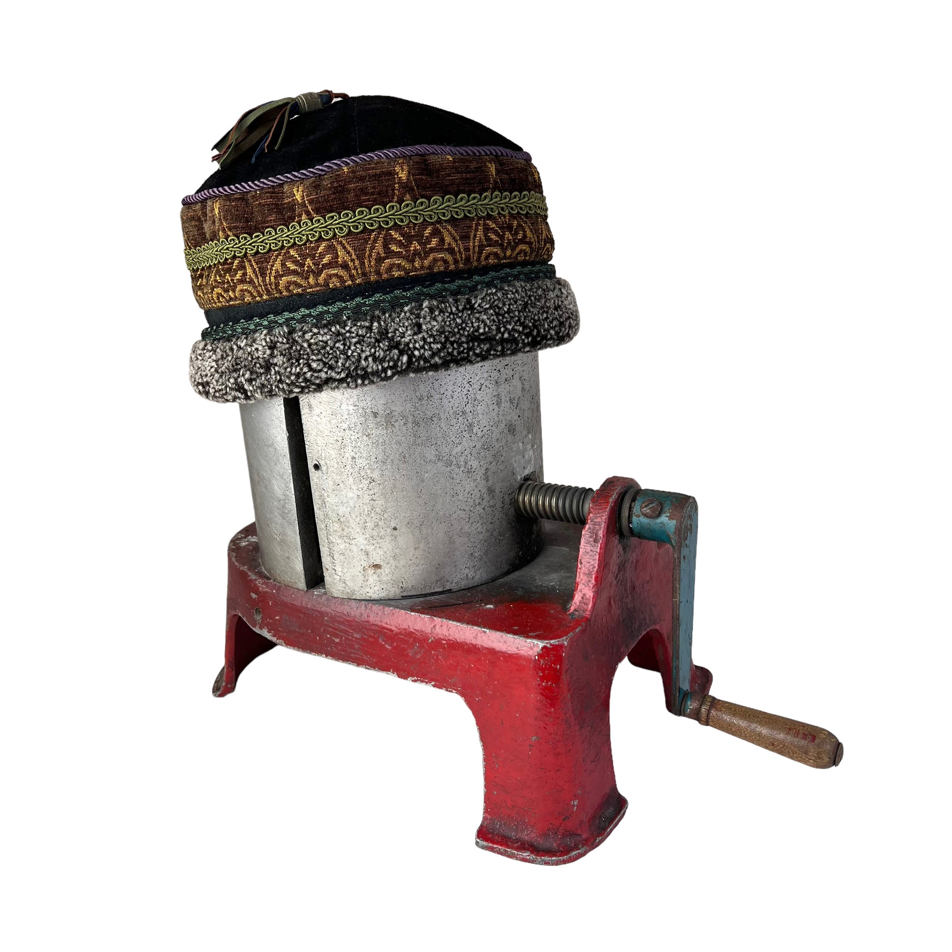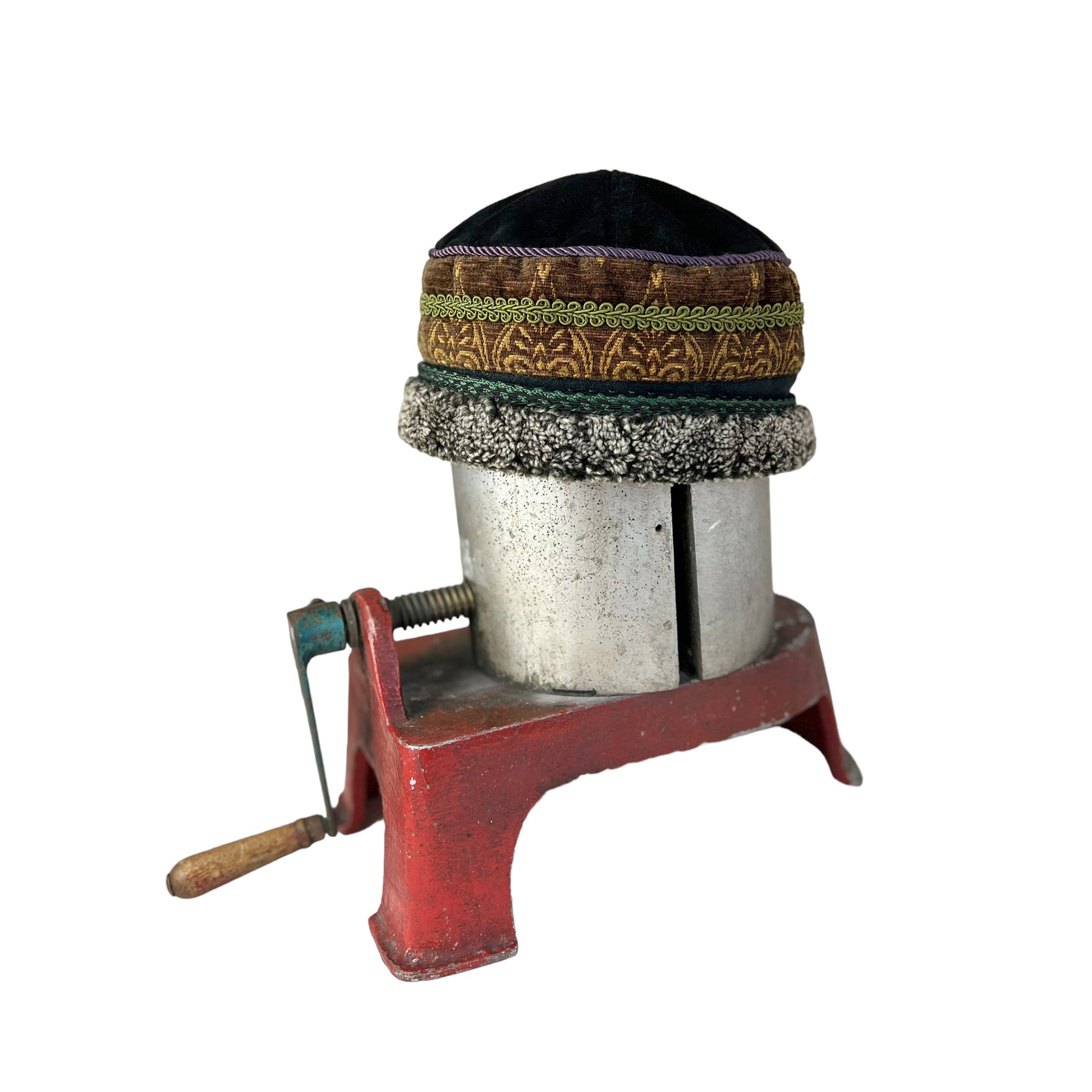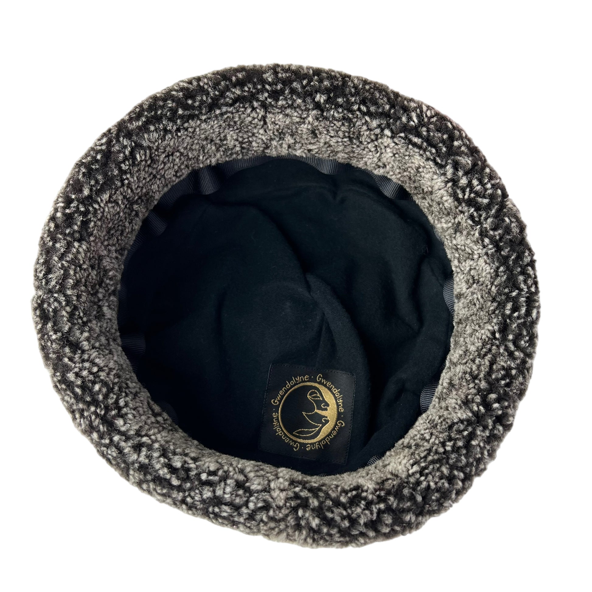 This pillbox style winter hat design is Gwendolyne's "The Tibetan" design. Every creation is one of a kind.