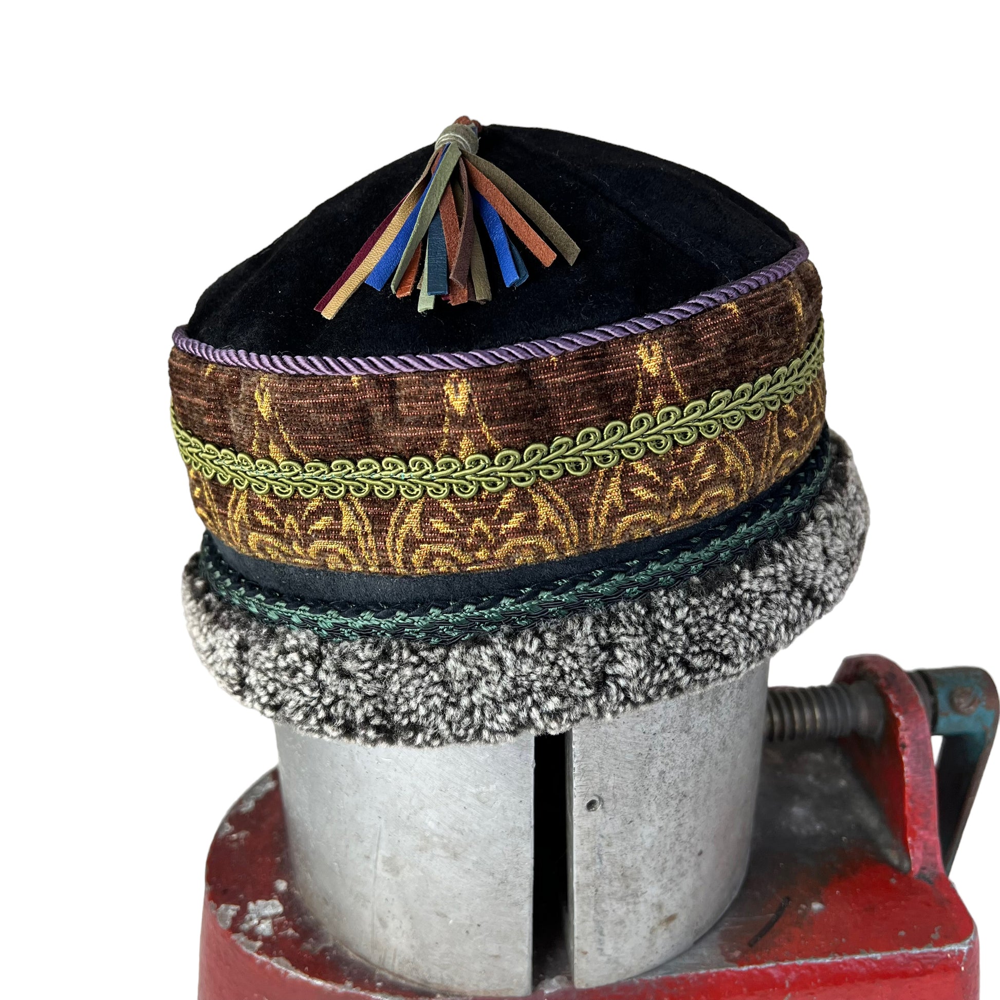 Black top Tibetan Pillbox Hat Brown Gold X Small size