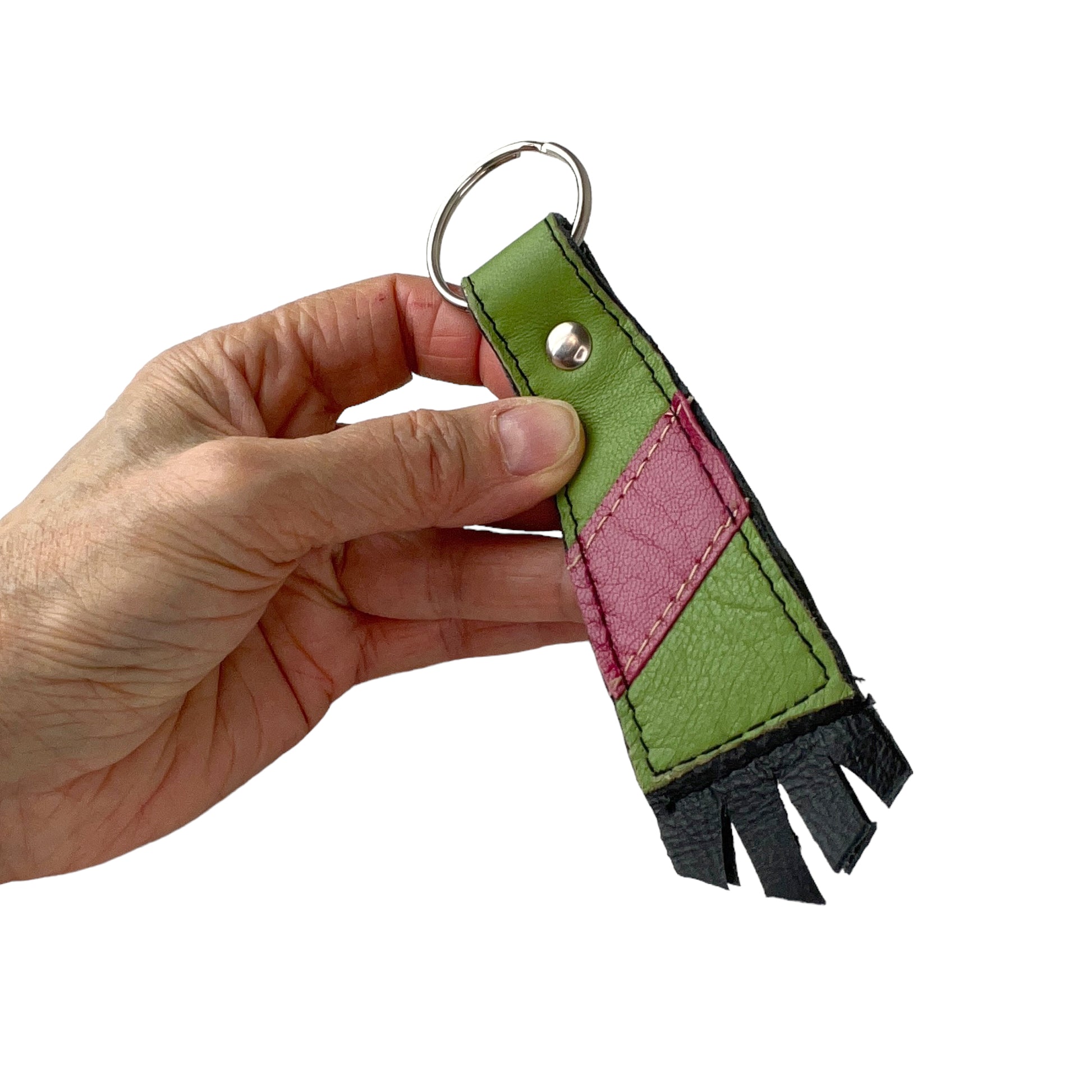 Large Lime Pink Cowhide Key Ring Fob