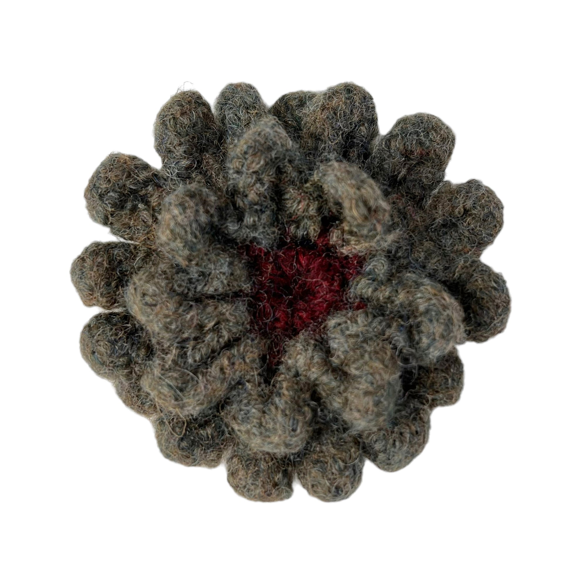 Wool Felted Crochet Flower Brooch Sage Green Red