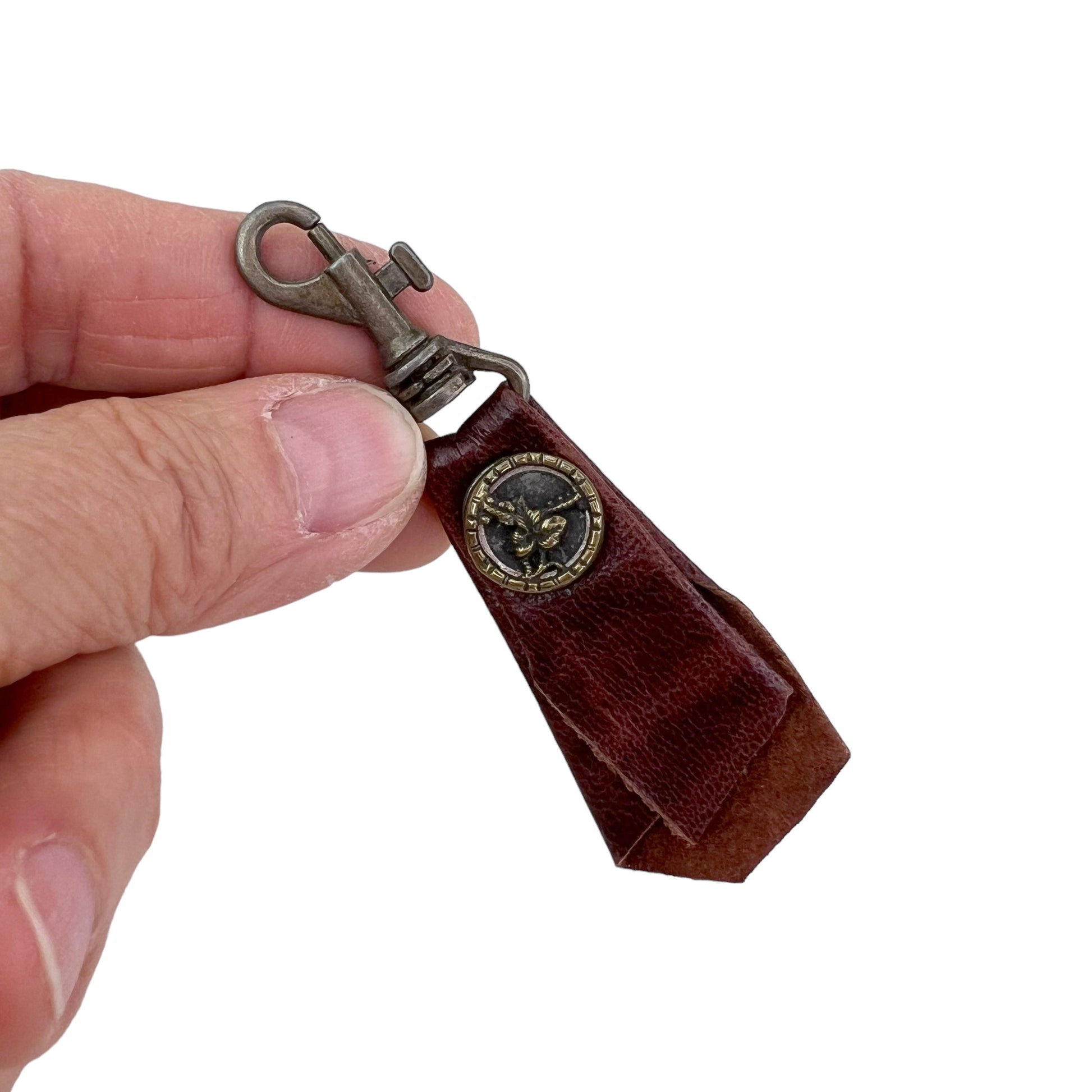 This one of a kind attachable lamb leather brown fob is handmade and is a practical accessory to be to hooked on a zipper pulley tab.
