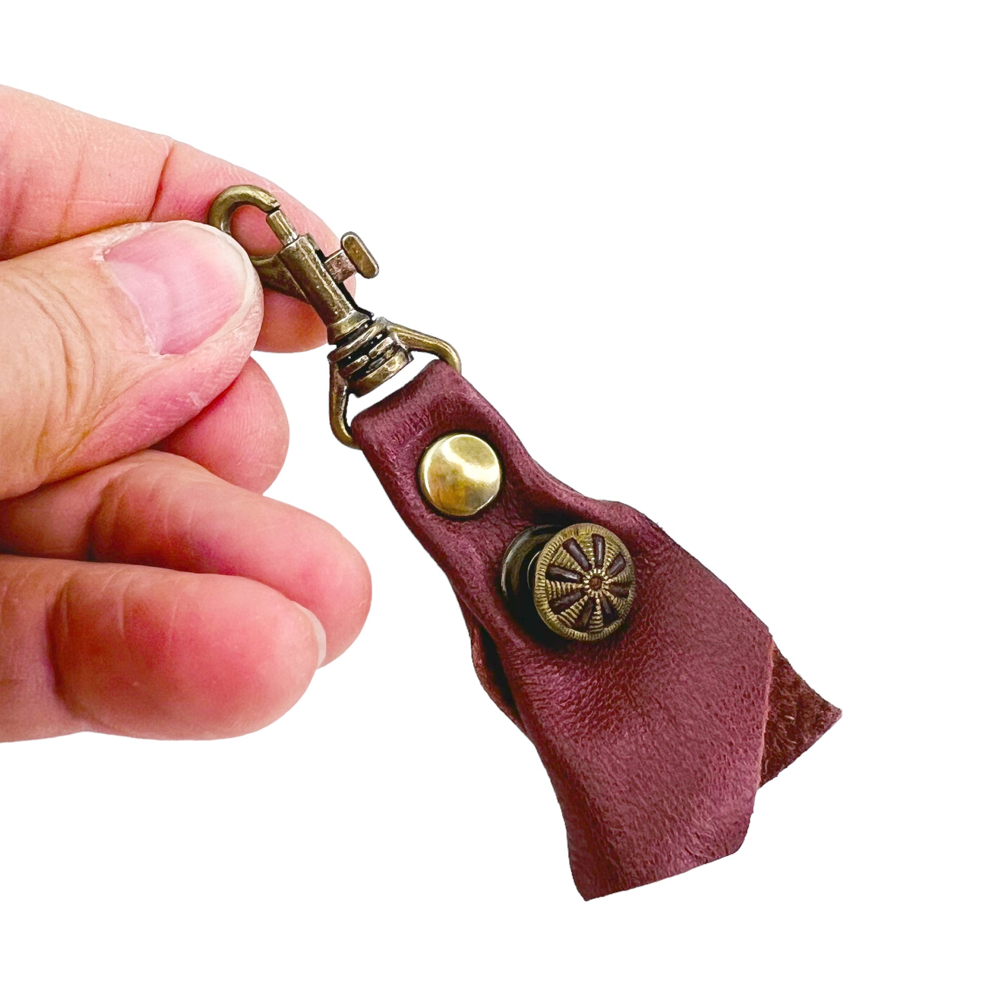 This one of a kind attachable lamb leather clay brown fob is handmade and is a practical accessory to be to hooked on a zipper pulley tab.