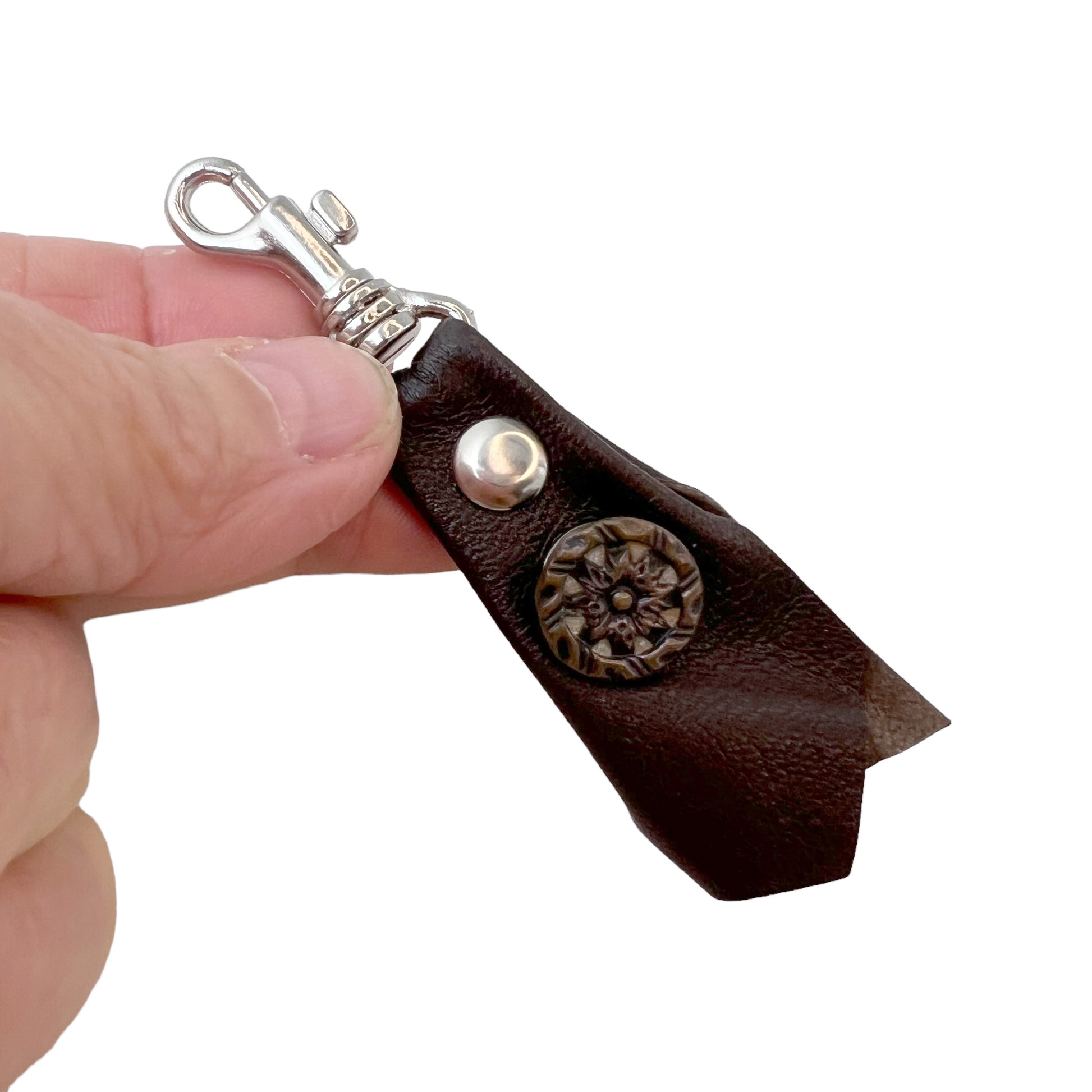 This one of a kind attachable lamb leather dark olive fob is handmade and is a practical accessory to be to hooked on a zipper pulley tab.