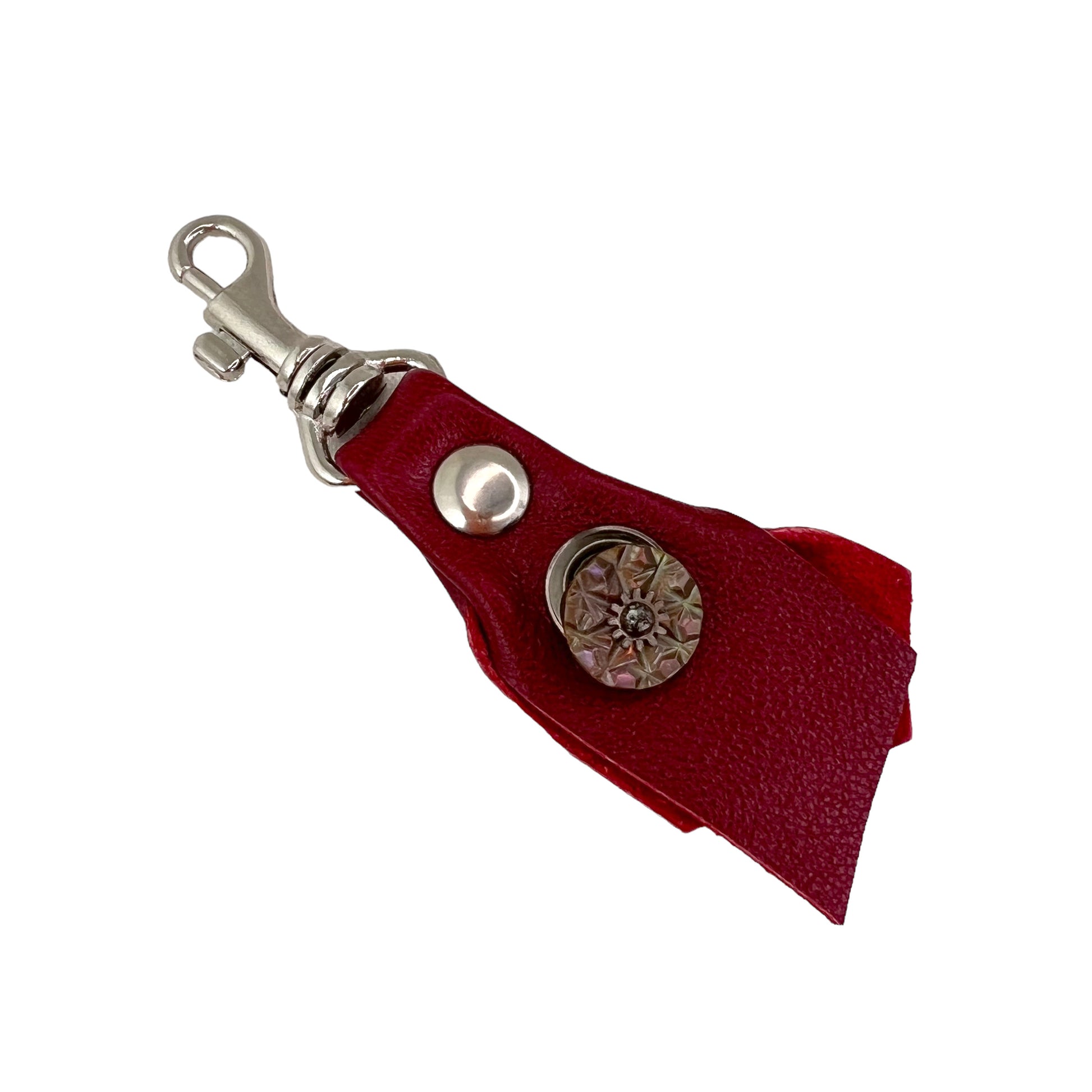 This one of a kind attachable lamb leather red fob is handmade and is a practical accessory to be to hooked on a zipper pulley tab.